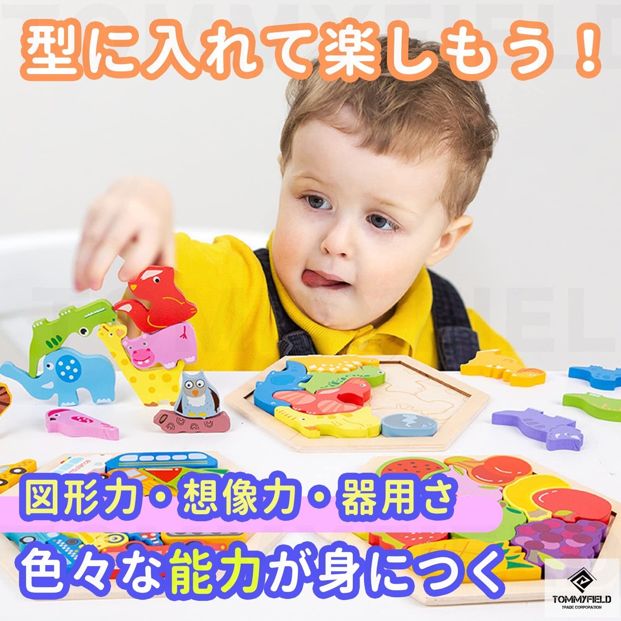 TOMMYFIELD 木製パズル はめ込み 動物 果物 車 パズル 6個セット