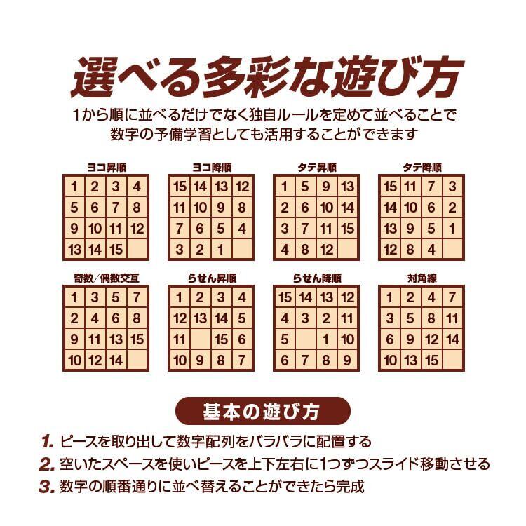 ・ピース数:8枚(8パズル)、15枚(15パズル)