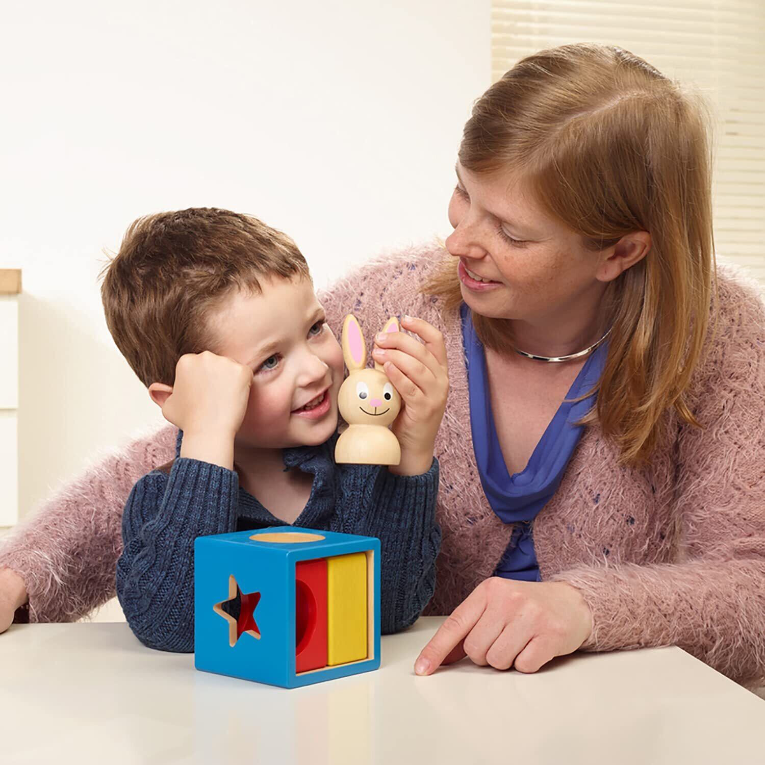 バニー・ブーは、“上と下" “中と外" “見えている・隠れている" など、小さなお子様が言葉や言葉の意味を学び始めるのに最適なゲームです。