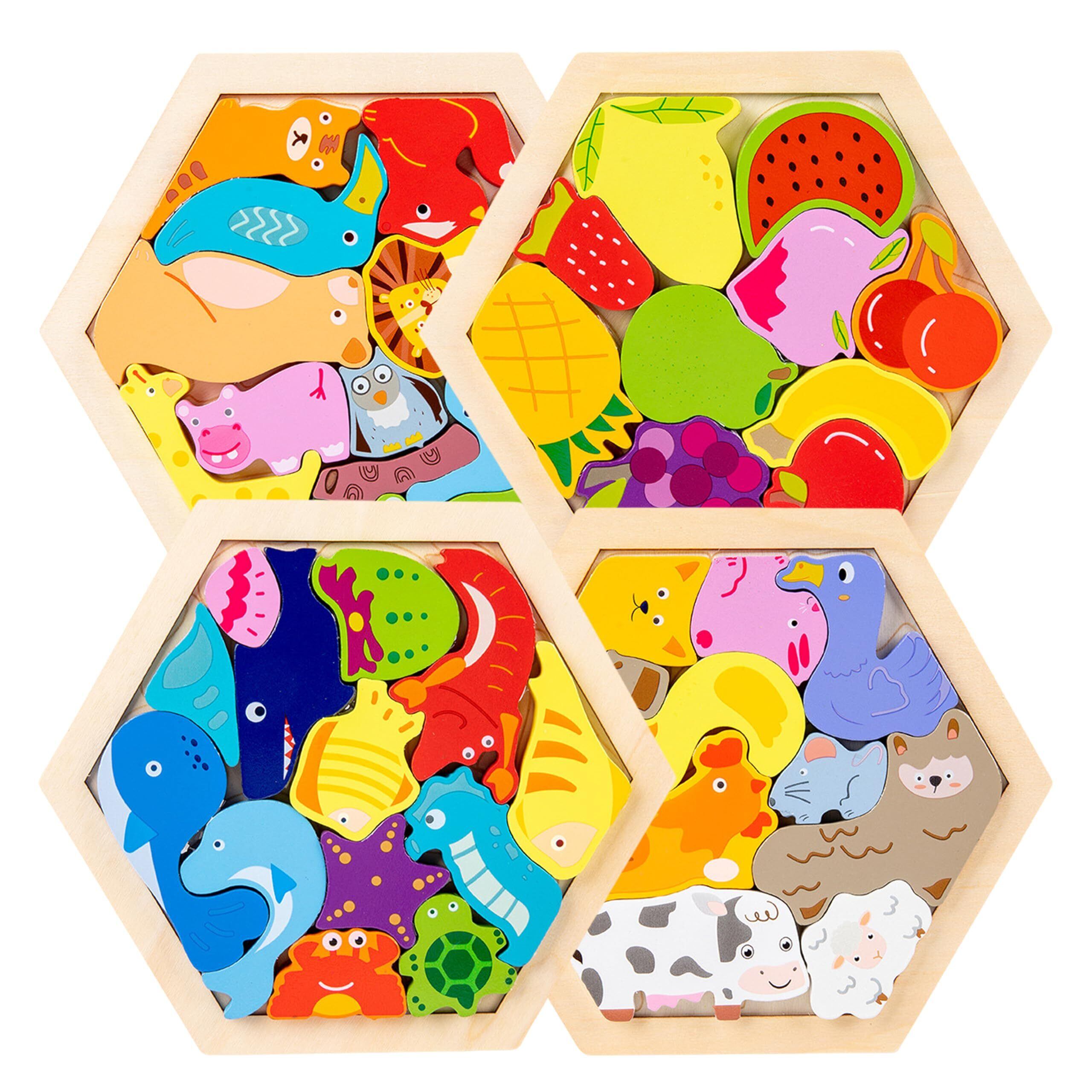 【人気商品】Shinse 木製パズル 型はめパズル 形合わせ かたはめ 3 4 5 6歳 子ども 幼児 モンテッソーリ 早期開発 知育玩具 指先あそび 数字・形・図形認識 男の子 女の子 おもちゃ 誕生日 クリスマス (セット1-4PCS) | SmartLiving+