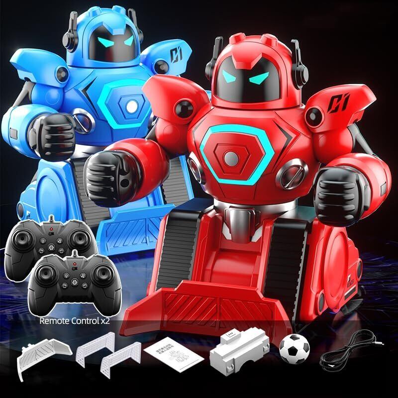 【遊び方が豊富で面白い】ボクシングの対戦以外にも、アイデアの遊び方がたくさんあります。バケット2個とゴール2個、サッカーボールの小道具1個が付属し、設置が完了するとサッカーの争奪戦ができる。ロボットが武器を手にしてDIYすることもできるので、あなたのロボットを個性的にして、快適なコンテストを行いましょう!
