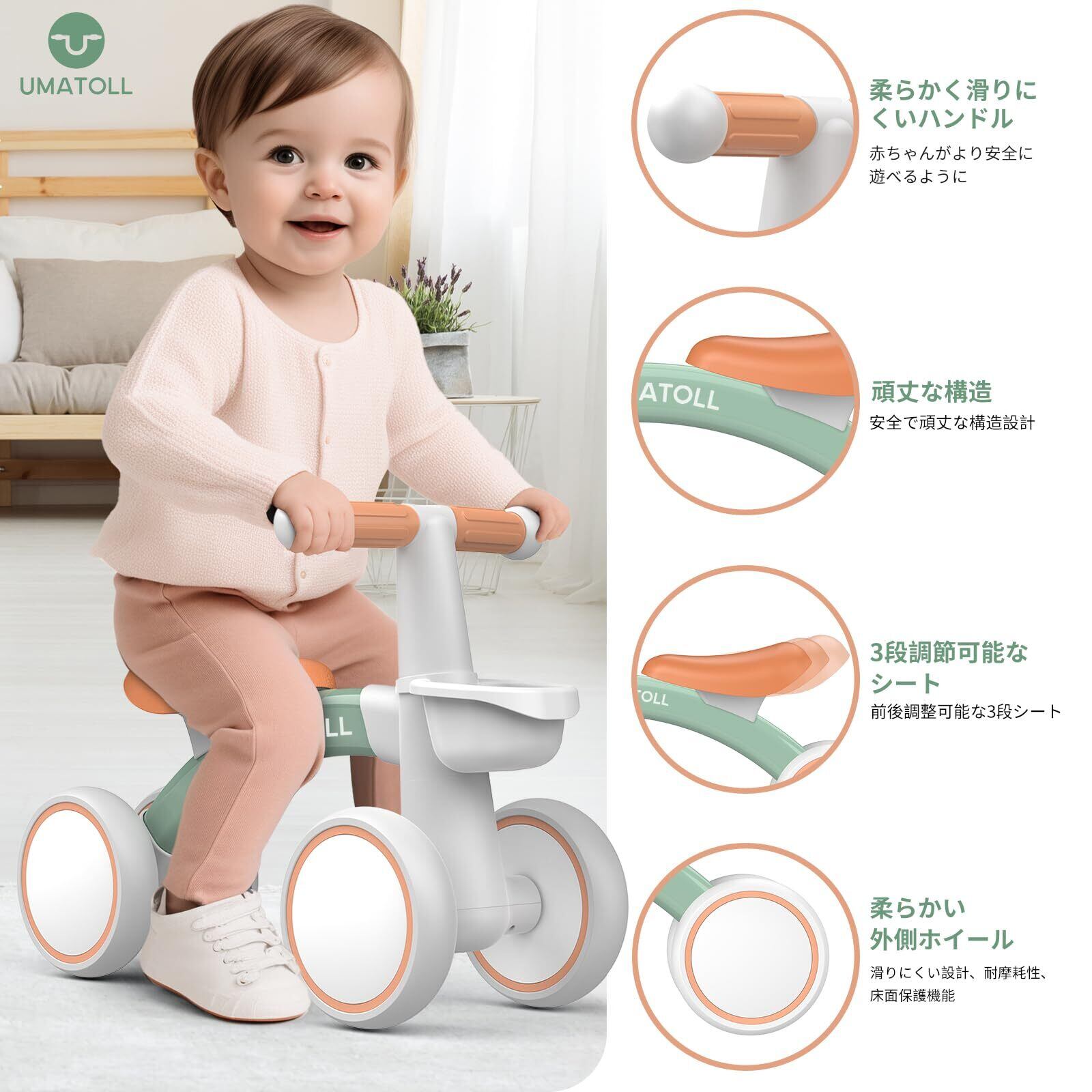 Umatoll 四輪車 1-2歳 カゴ付き 幼児 ペダルなし 超軽量 赤ちゃん キッズ 男の子 女の子 自転車 誕生日 プレゼント おもちゃ