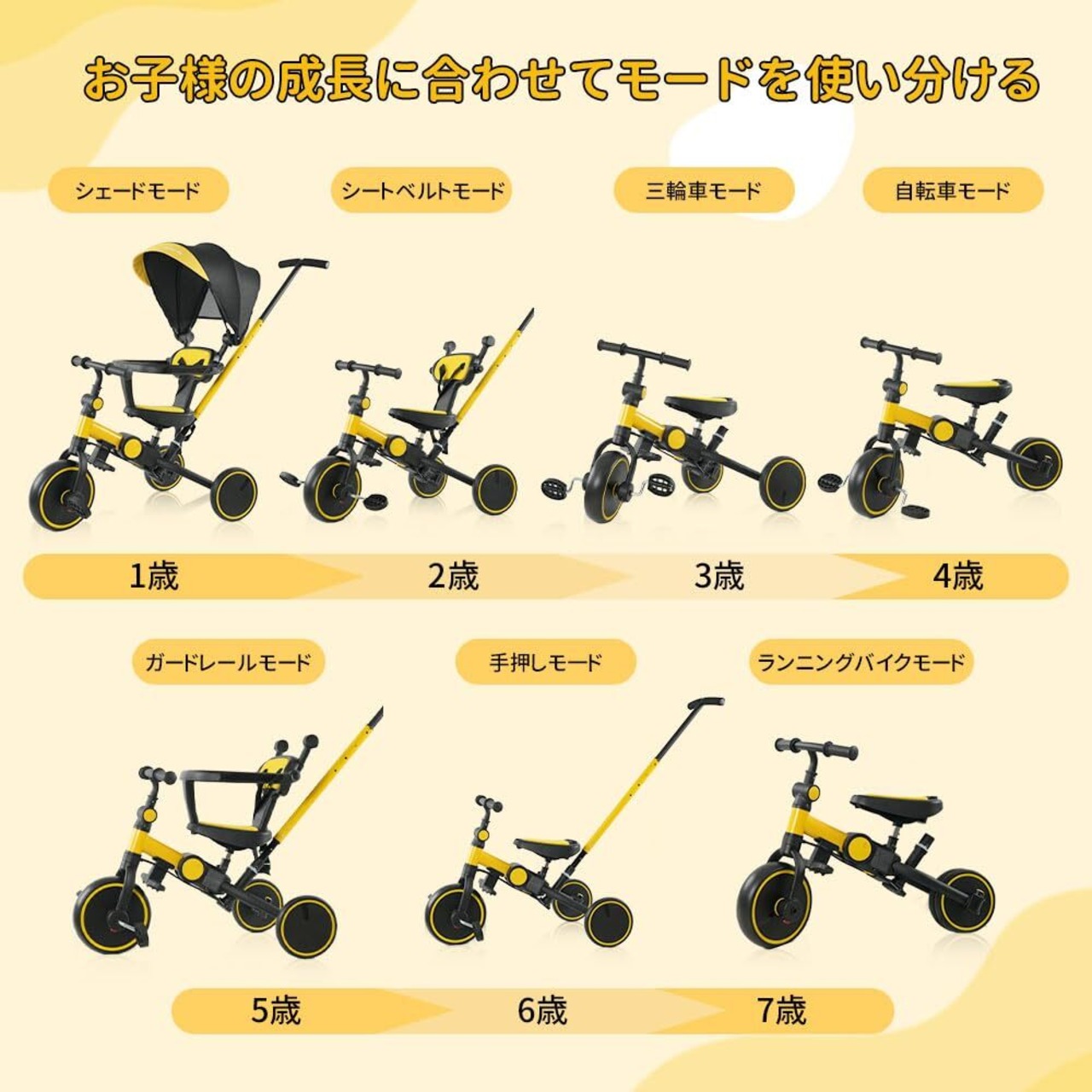 アオルトド 子供用三輪車 7in1 ランニングバイク バランスバイク 折りたたみ 押し棒付き ペダル付き サンシェード付き 組み立て簡単 超軽量 乗用玩具 機能満載 アウトドア&室内兼用 1~6歳 おもちゃ プレゼント ブラック