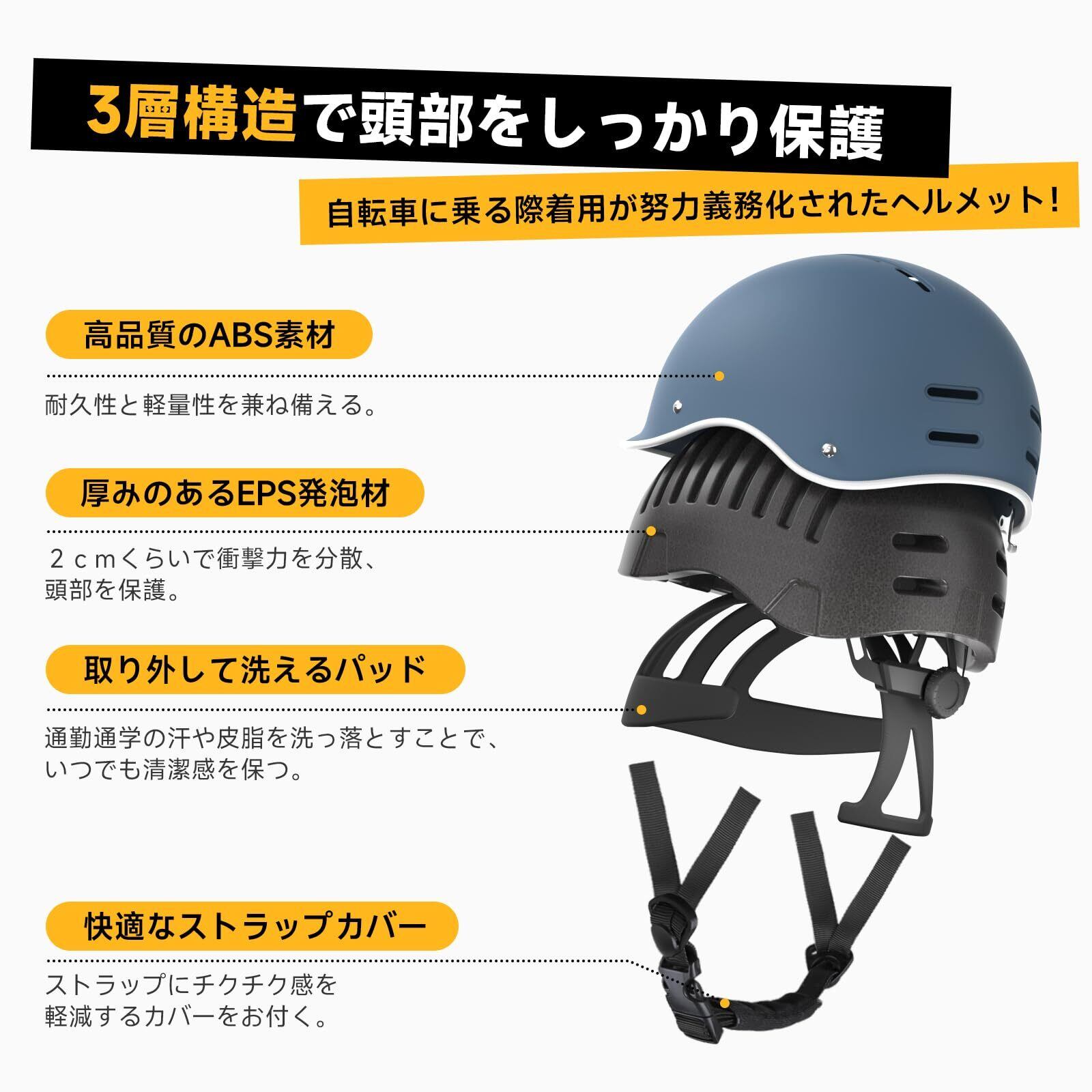 【安全基準に準拠していると認証された合格品、自転車 ヘルメット 子供/大人】自転車ヘルメットの必要性は感じていても、普段着には合わせづらいデザインばかりで敬遠しがち…そこで通勤や通学をはじめ、日常生活になじむヘルメットを開発しました。そして街乗りに合うワークキャップのようなシンプルなデザインと、日本人の頭の形に合わせて幅が広めの設計です。安心感と帽子の気軽さを併せ持った自転車用ヘルメットに求められる安全性(自転車用CE規格品/CPSC規格品/ASTM基準品※)はもちろん、快適性、デザイン性を重視されます!!また衝撃吸収ライナーとシェルを一体化する「インモールド成形」という製法を採用、お子様の負担を減らすべく、軽さとコンパクトを追求します。フィット感、衝撃吸収性、あごひも強度、素材の安全性など複数の試験を実施し、良かったらぜひ試してみてください。