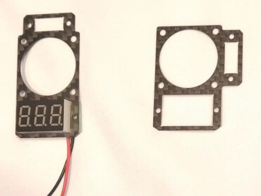 カーボン製のESC電圧プレートです。別売りのデジタル電圧計を取り付けることが出来ます。φ30。厚み0.5㎜です。