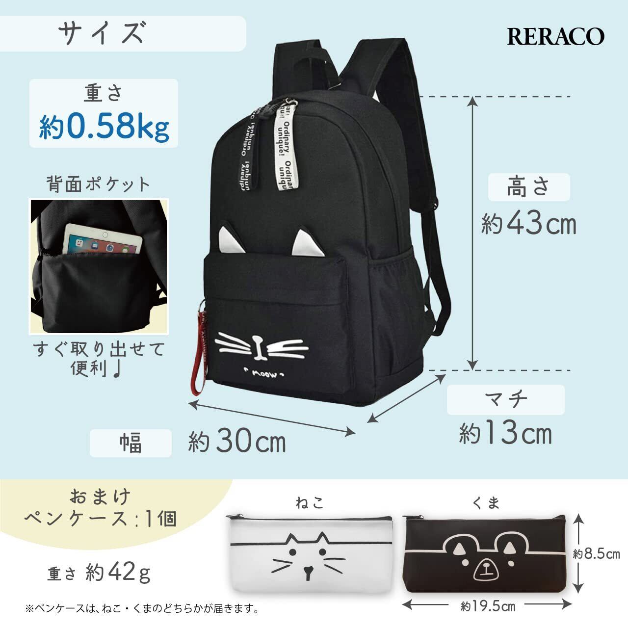 [RERACO] リュック バックパック 猫 ねこ 黒 猫耳 猫柄 大容量 軽量 ネコ ミミ 耳 柄 フェイス デザイン 女子 キッズ