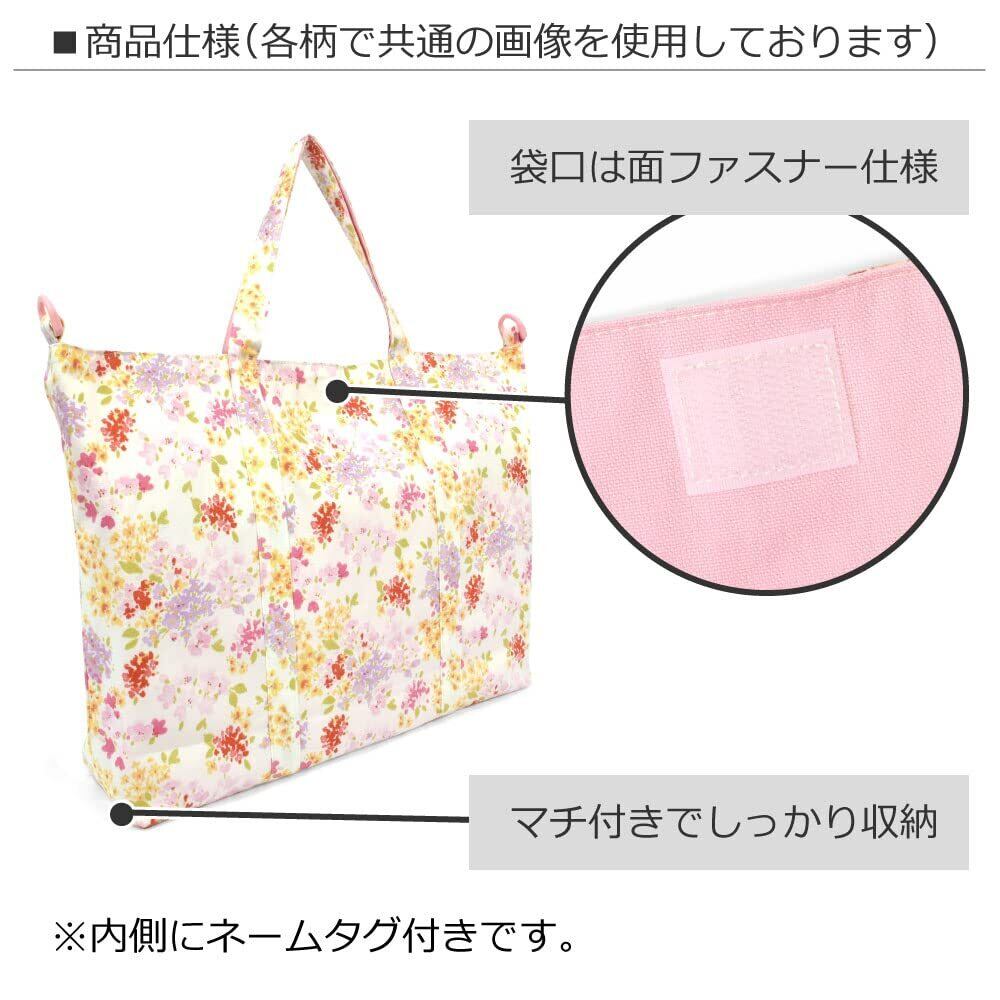LAURA ASHLEYの生地を使用した、収納力抜群!9cmのマチ付きレッスンバッグ。バッグ本体とショルダーベルトにLAURA ASHLEYの生地を使用した、マチ付きレッスンバッグ。学期の始まりや終わりなど荷物が多い時にも最適。お道具箱もすっぽり入ります。