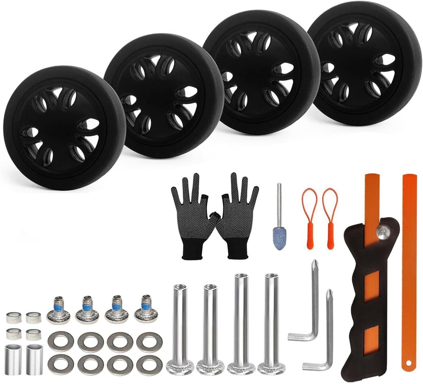 【新着商品】[ASUNTOM] ラゲッジスピナーホイール修理セット スーツケースタイヤ 4個 2インチ/52mm 回転ホイール 厚さ0.59インチ/15mm TPUゴムインラインホイール 2サイズ車軸フルセット 修理ツール スピナー スーツケース トロリーバッグ ドローバー トラベルボックス | SmartLiving+