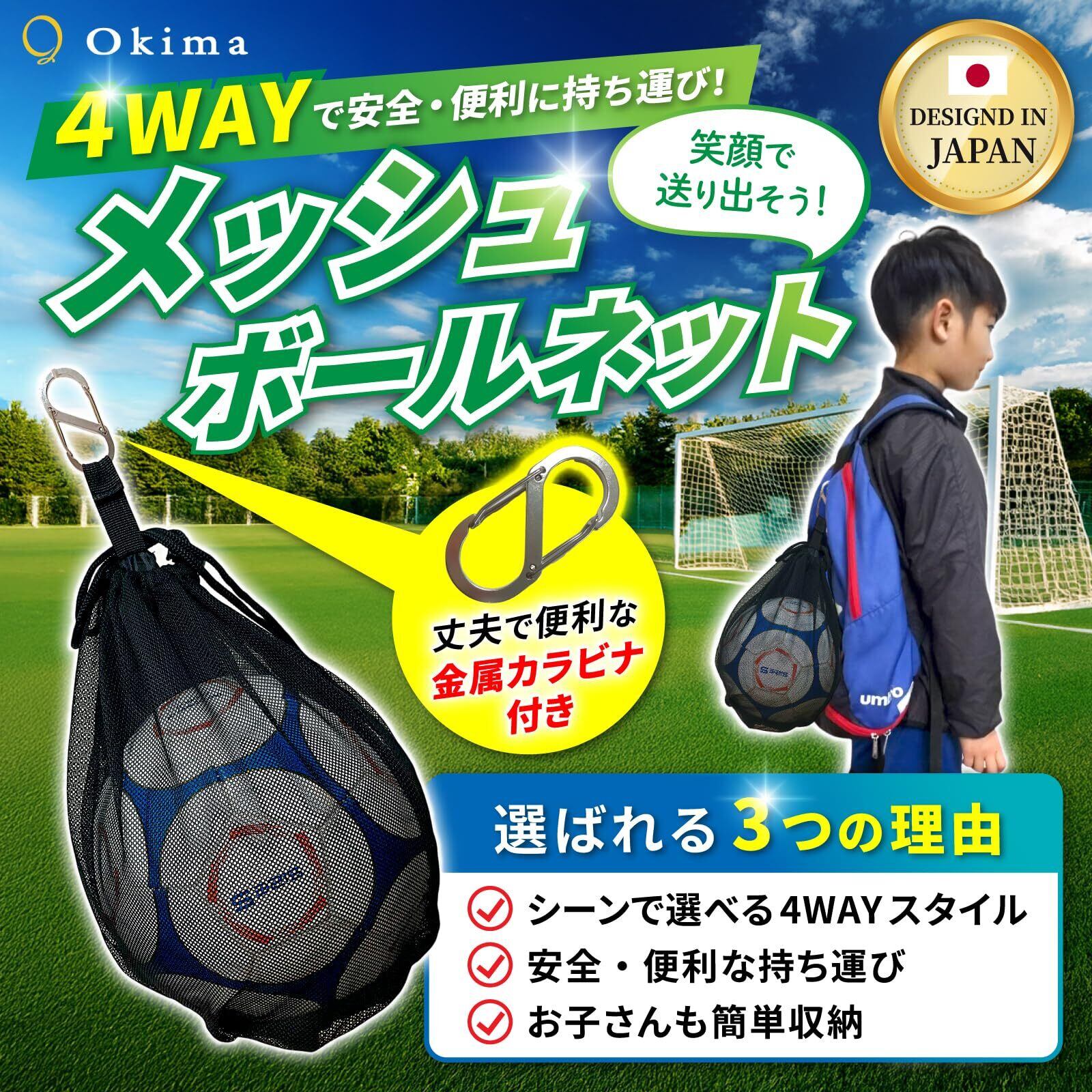 Okima サッカーボール ネット 入れ【4WAY&簡単収納 】 バッグ ボール収納 リュック 自転車 取付 4号 5号 【日本ブランド】