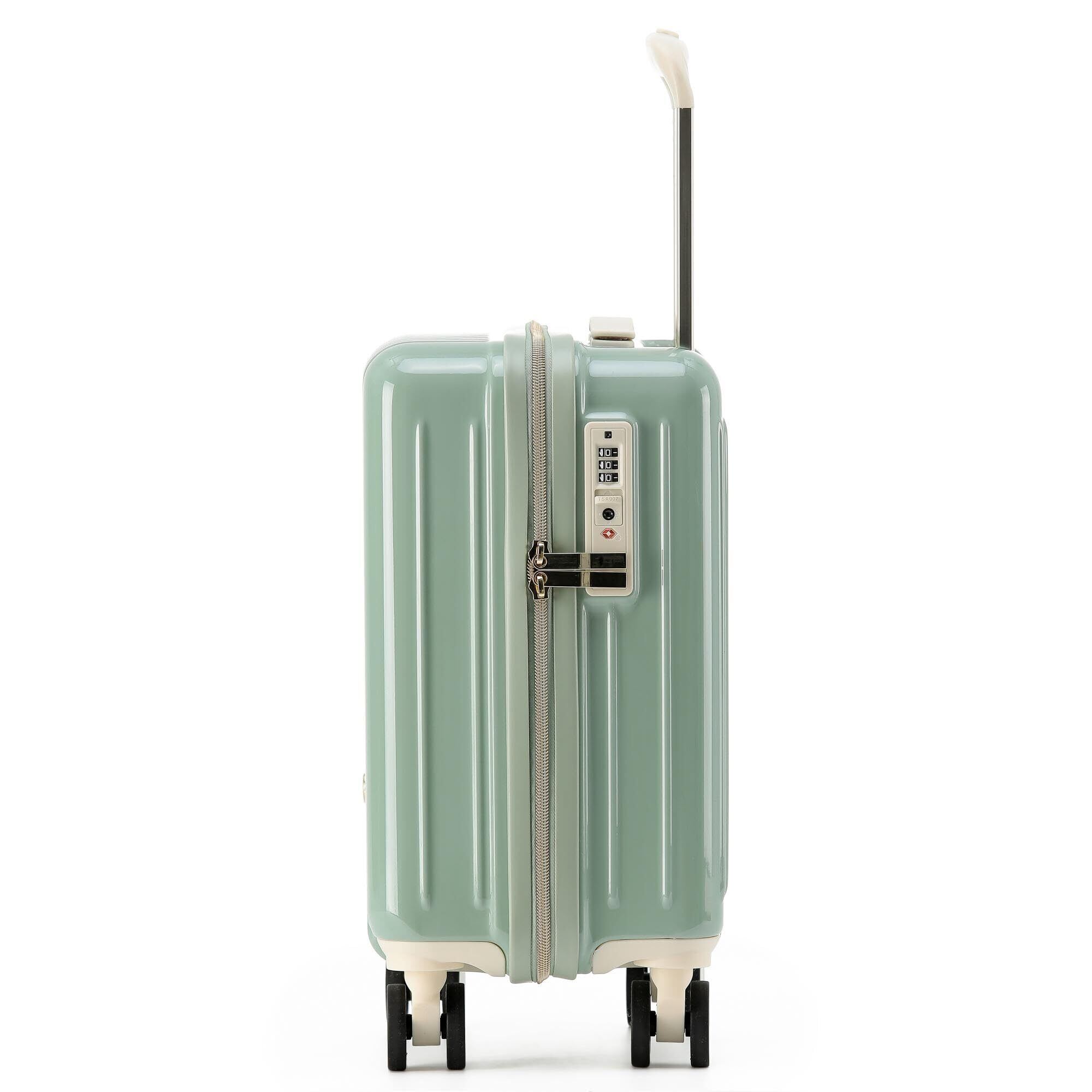 [Spyplan] スーツケース 機内持ち込み キャリーケース 小型 LCC対応 100cm未満 超軽量 コインロッカーサイズ 可愛い 26L 1泊2日 耐衝撃 ファスナータイプ 静音 ダブルキャスター 360度回転 TSAロック搭載 人気 レディース ショートトラベル旅行 ユニセックス子供 ミニサイズスーツケース グリーン