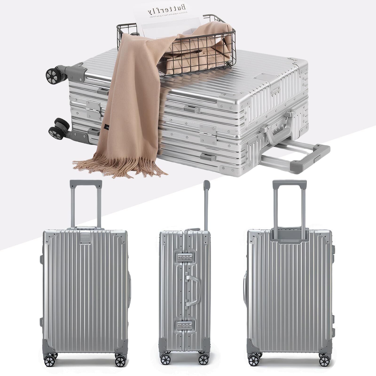 【新着商品】[SupTrip] スーツケース 機内持ち込み アルミフレームタイプ キャリーケース キャリーバッグ 大型 耐衝撃 TSAロック 超軽量 大容量 静音 ダブルキャスター 360度回転 おしゃれ 旅行 出張 修学 (シルバー, Mサイズ/50L) | SmartLiving+