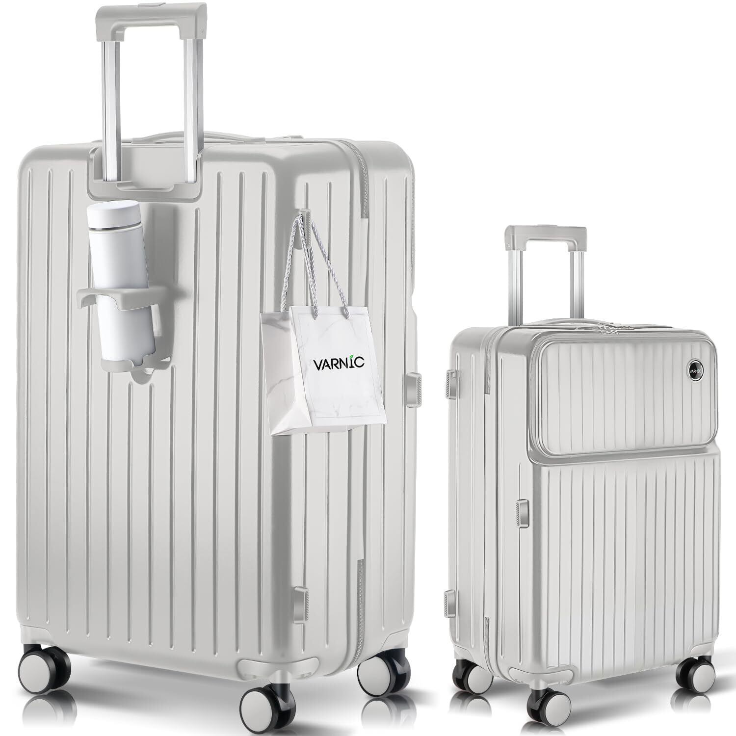 【特価商品】[VARNIC] スーツケース トップオープン式 多機能 キャリーバッグ USBポート付き カップホルダー付き キャリーケース 三段階調節キャリバー ABS+PC 超軽量 耐衝撃 振動軽減 静音 360度回転 ダブルキャスター 物掛けフック式底足 オシャレ 通学 ビジネス 旅行 出張 (ホワイト, Sサイズ/機内持込(1-3泊)) | SmartLiving+