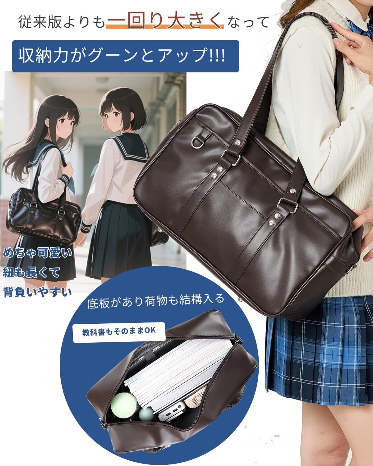 [uishun] スクールバッグ 高校生 合皮 スクバ 女子 高校生 ボスドンバッグ 学生 JK 大きめ 革 大容量 通学 通塾 大容量 肩紐長い 男女兼用