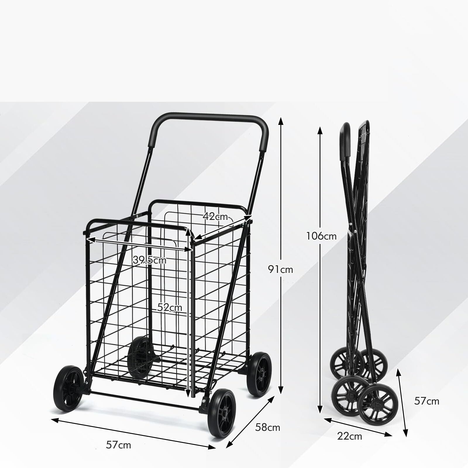 【特価セール】BestBuy ショッピングキャリー 買い物カート キャリーカート 4輪 折りたたみ 大容量 耐荷重35kg 軽量 台車 コンパクト カート 収納便利 多用途 買い物 洗濯 アウトドア (ブラック-M) | SmartLiving+