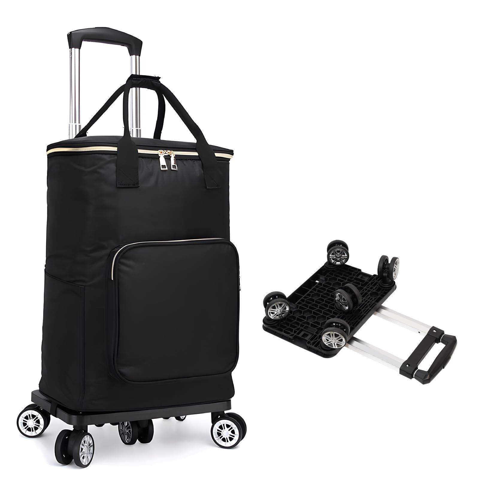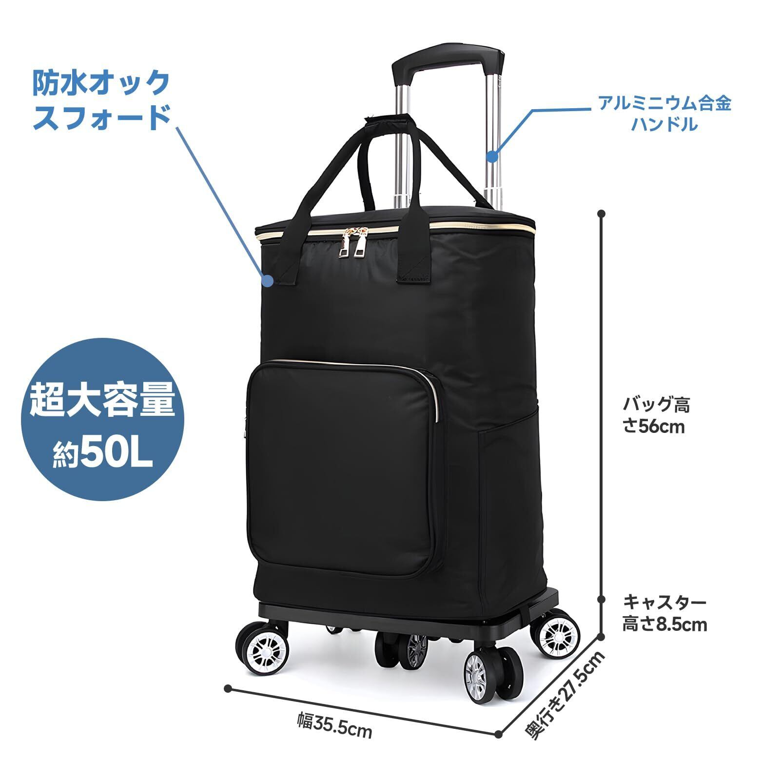 zmayastar 買い物カート 5輪 ショッピングカート 保冷機能付き トートバッグ型 お買い物キャリー キャスター付き 保冷バック 保温 買い物 折り畳み式 軽量 取り外し可能 2WAY 軽量 ハンドル長さ調節3段階 (ブラック, 50L)