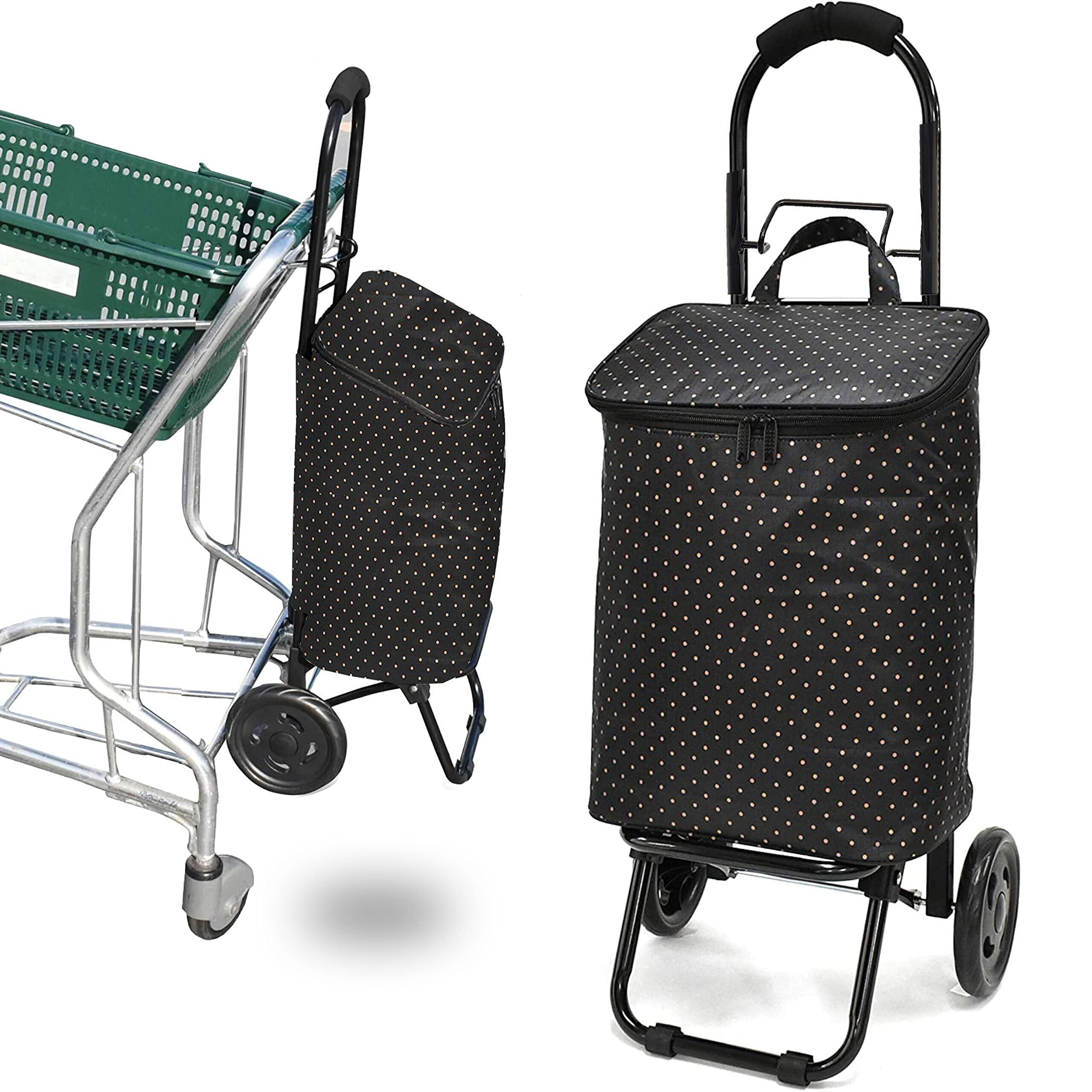 【特価セール】Basic Standard ショッピングカート スーパーの カートに掛けられる ! 便利 買い物カート 折りたたみ 軽量 保冷 保温 おしゃれ ドット ブラック M | SmartLiving+