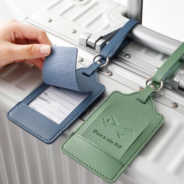 1.【商品詳細】サイズ:高さ約10cm×横約7cm×厚み約0.5cm;材質:PUレザー;カラー:スカイブルー+ライムグリーン。 2.【高品質なPUレザー】ソフトなPUレザーは、柔らかくて滑らかな手触りがあります。素材自体が高品質であり、上質な印象を与えます。耐久性が高く、長期間使用することができます。しっかりとした構造を持っているため、破れにくいです。 3.【取り付け方が簡単】荷物タグと同じな色のベルトが付き、ベルトの末には丸いカラビナが付き、スプリングリングを押し、ネームタグをスーツケースに取付と取り外しが簡単です。 本当に便利でシンプルで巧妙なデザインです。 4.【製品の特徴】フロントカバーのデザインにより、個人情報がに漏洩することを効果的に防ぎます。スロットデザインは完全に隠れ、情報保護性をさらに強化します。 5.【幅広い用途】旅行、出張のスーツケースだけではなく、スポーツバッグ、カバン、子供の通学・通園鞄、ランドセル、カバン、傘などにもオススメです。