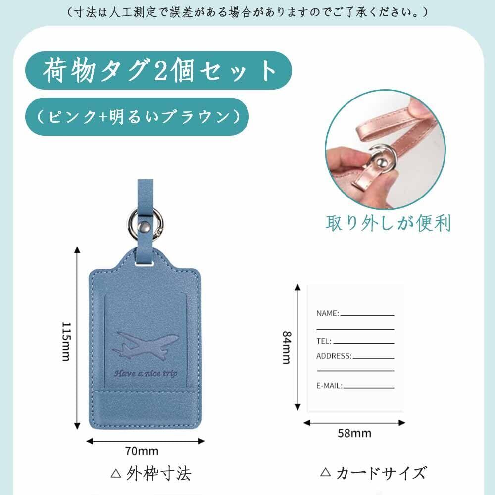 【セット内容】荷物タグ2個セット、サイズ:高さ約11cm×横約7cm×厚み約0.5cm(ベルトの長さ約:22cm)。カラー:ピンク+明るいブラウン。(寸法は人工測定で誤差がある場合がありますのでご了承ください。)