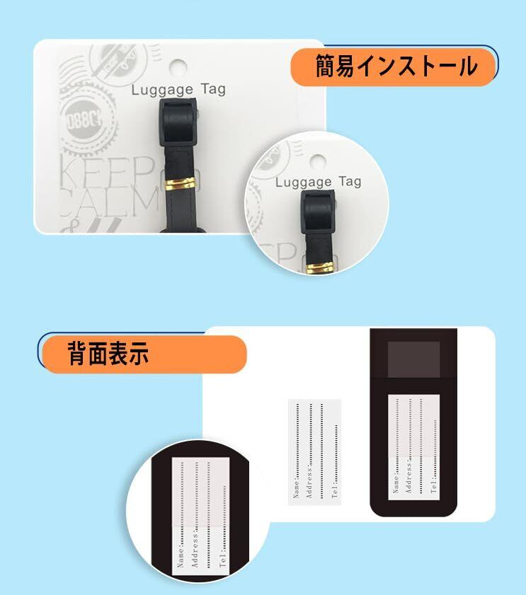 【素材】PVC。耐久性があり、日常の摩耗に強く、長持ちするように作られています。 【サイズ】約11cm。とてもスタイリッシュで、荷物に掛けると目を引きます。スーツケースや荷物が一目でわかります。 【紛失防止】名札の裏面に住所、氏名、電話番号を記入すれば、荷物の所在が一目で分かります。個人情報の盗難を防ぐフロントカバーが付属しており、安心してご利用いただけます。 【多機能】旅行以外にも、お子様用バッグ、通学用バッグ、スポーツバッグとしてもおすすめです!シンプルなデザインで何度見ても愛着が湧きます!部活や習い事などのアクティビティにもおすすめです。 【品質】お品物の色合いは、写真撮影・パソコン画面表示等の環境の違いにより、若干異なる場合がございますので予めご了承下さい。ご質問やご不明な点がございましたら、お気軽にお問い合わせください。24時間以内にご返信いたします。