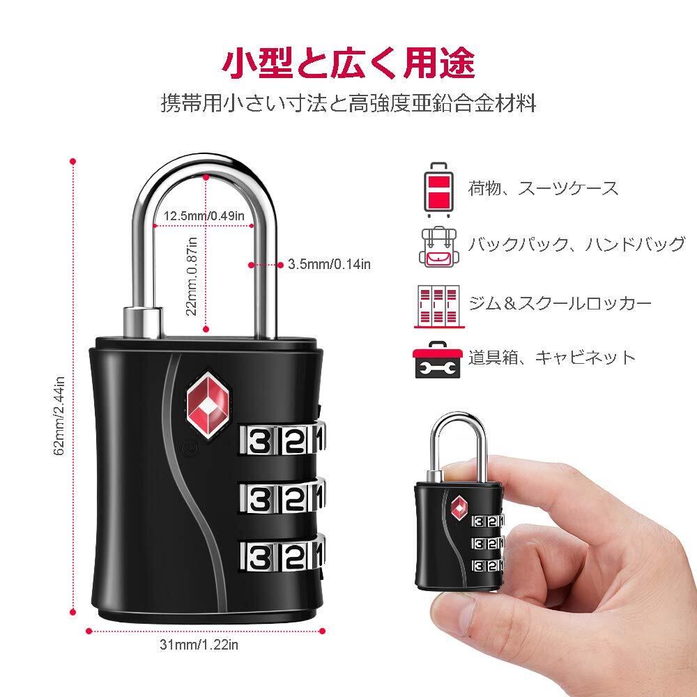 ZHEGE TSAロック ダイヤル式 南京錠 3桁 小型 カギ 海外旅行対応 ロッカー/バッグ/荷物用ロック 防犯 日本語説明書 (ブラック)