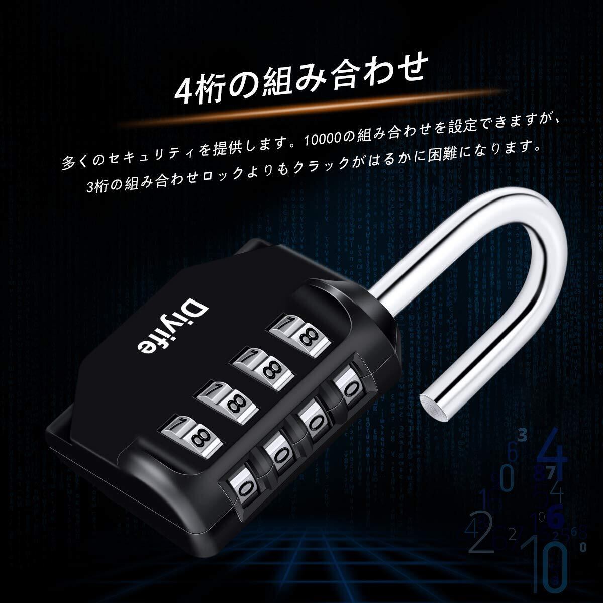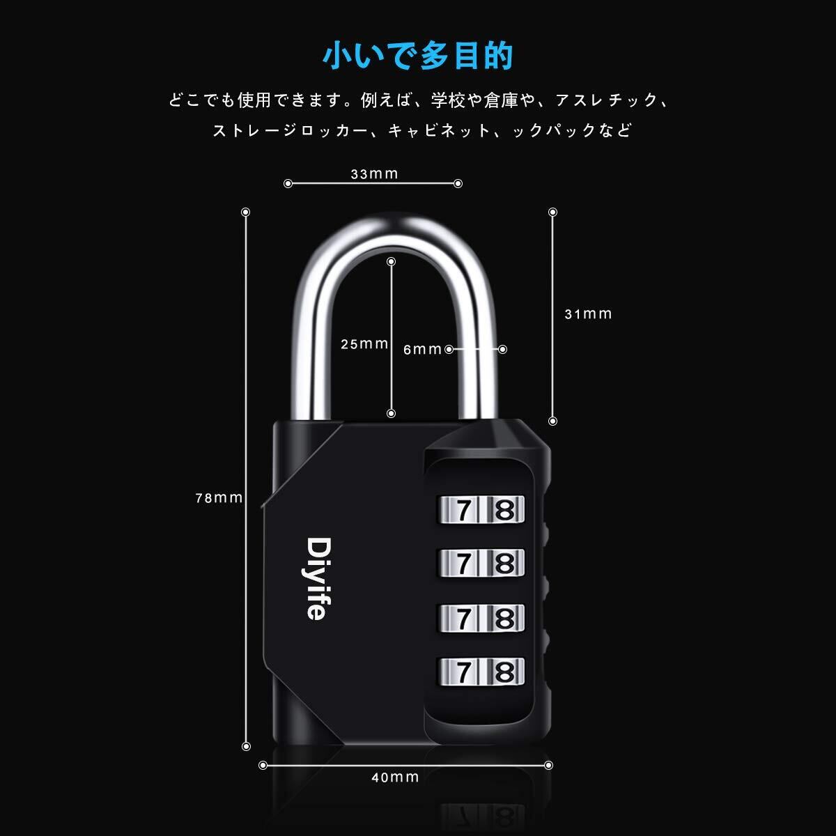 Diyife 南京錠 ダイヤル式 4桁のコンビネーションロック 盗難防止 番号式 ダイヤル錠 貴重品入れ 学校 ロッカー 企業 倉庫 屋外 日本語説明書 (ブラック)