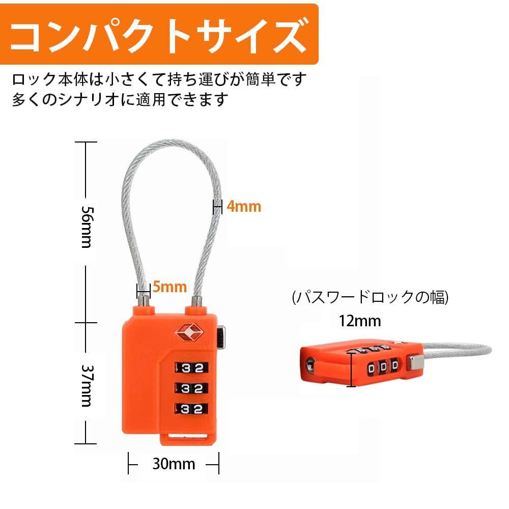 ロック 南京錠 旅行 ダイヤル式 3桁, 小型 ワイヤーロック 暗証番号 荷物、スーツケース、バックパック用 屋外 さびない オレンジ色