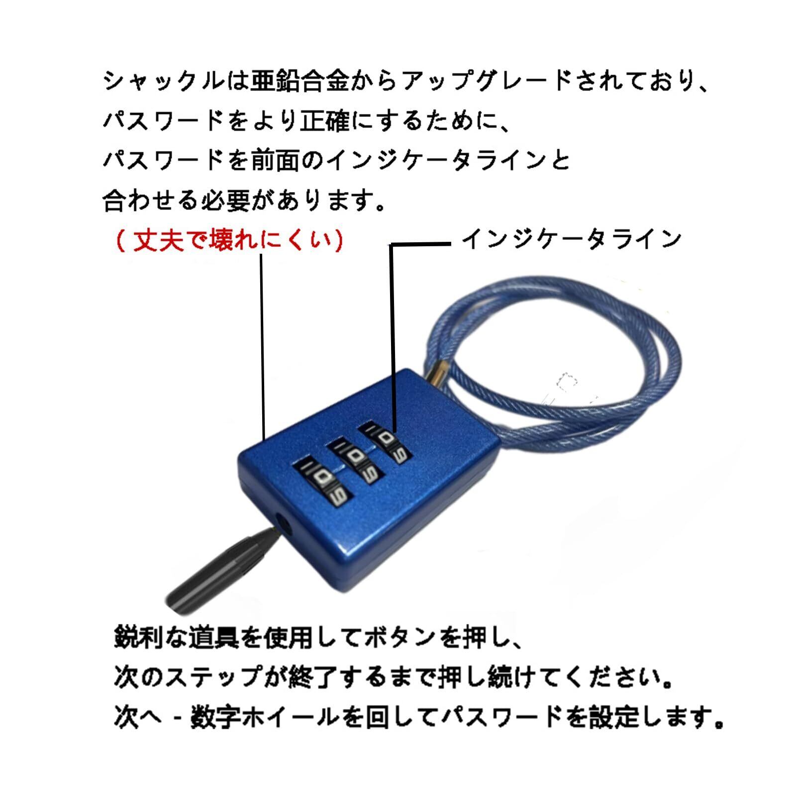 【使いやすい】パスワードロック解除、鍵を持ち歩く必要がなく、忘れたり紛失したりする心配がなく、鍵管理の手間が省けます。お好みに応じてパスワードを設定できるため、セキュリティが向上します。旅行、キャンプ、日常使用に最適です。スーツケース、荷物、自転車、バックパック、ツールボックス、家具など、さまざまなアイテムを保護するために使用できます。
