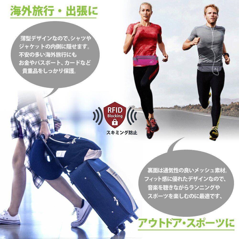 [BEATON JAPAN] セキュリティポーチ スキミング対策 RFID 防水 メンズ レディース ウエストポーチ 薄型 軽量 防犯 アウトドア 旅行 ジョギング 登山 サイクリング