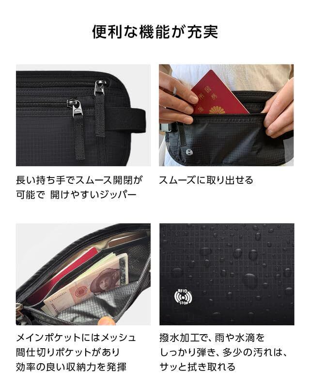 [Azul Mar] 盗難防止 ウエストポーチ マネーベルト セキュリティポーチ スキミング防止 薄型 海外旅行 腹巻 スリ防止 シークレットポーチ スマホ 旅行 便利グッズ