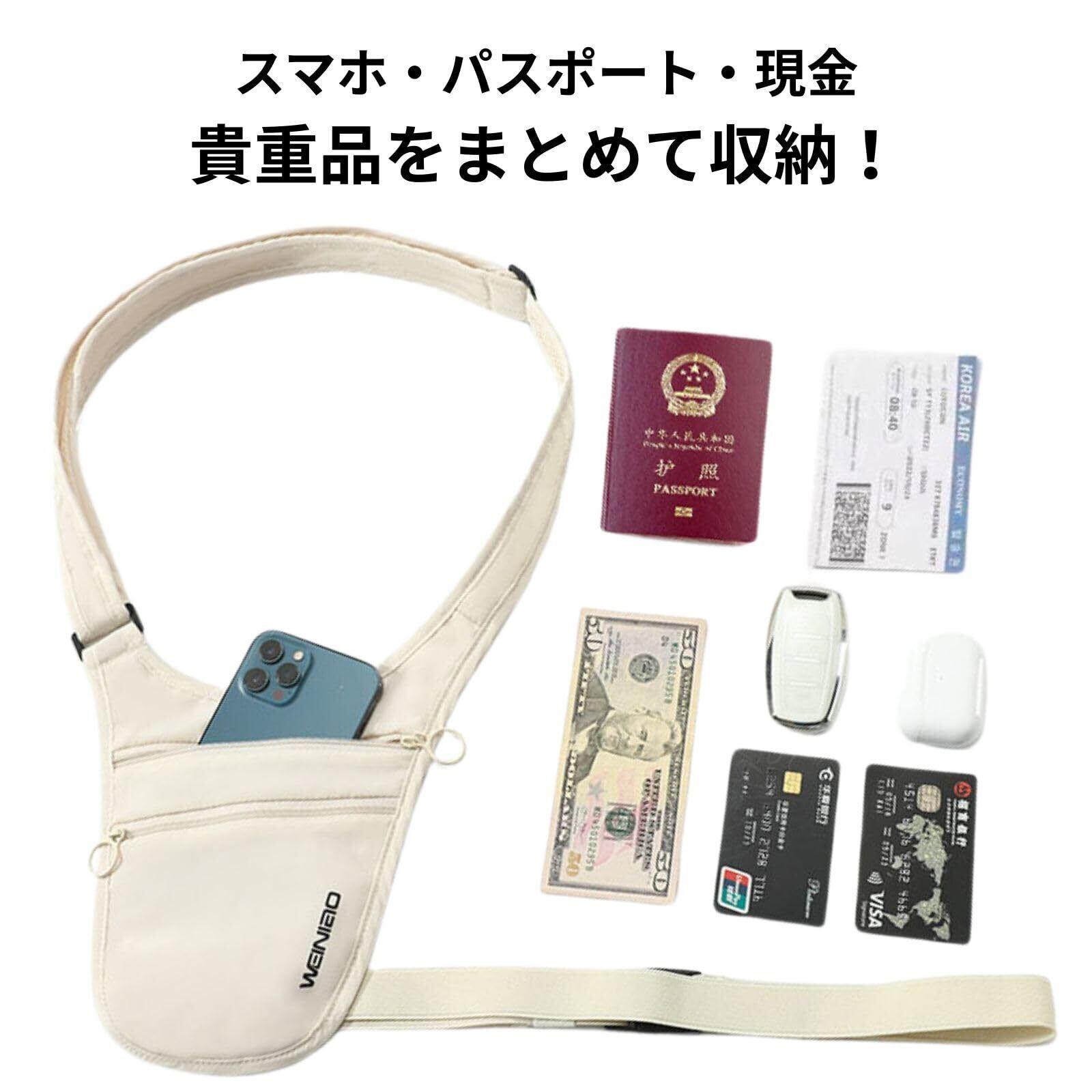 海外旅行 スリ対策 バッグ シークレットポーチ スマホ セキュリティポーチ 薄型 パスポートケース ホルスターバッグ 軽量 防水 (ベージュホワイト)