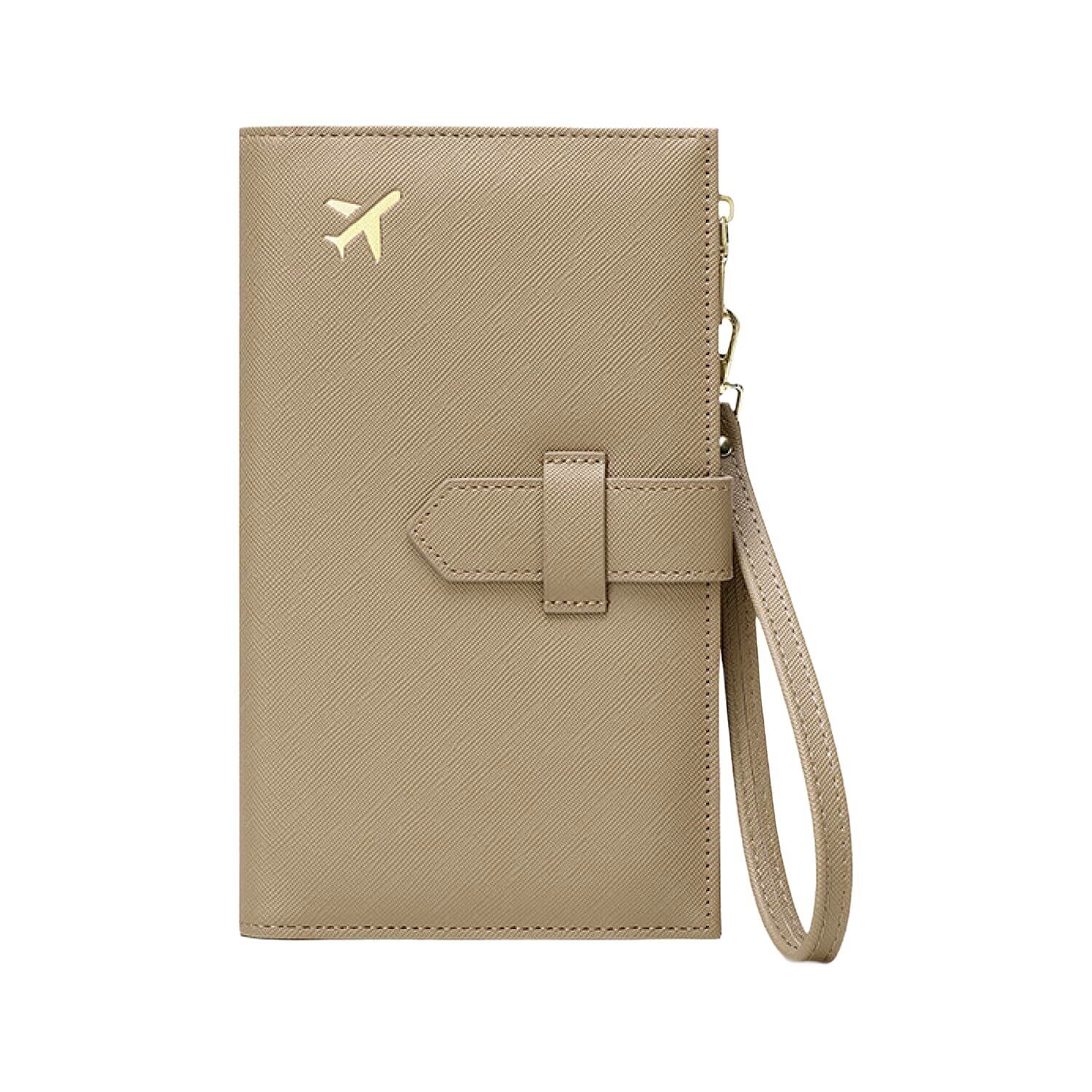 [Arena Leo] パスポートケース スキミング防止 薄型 二つ折り パスポートカバー 軽量 ストラップ付き (ベージュ)