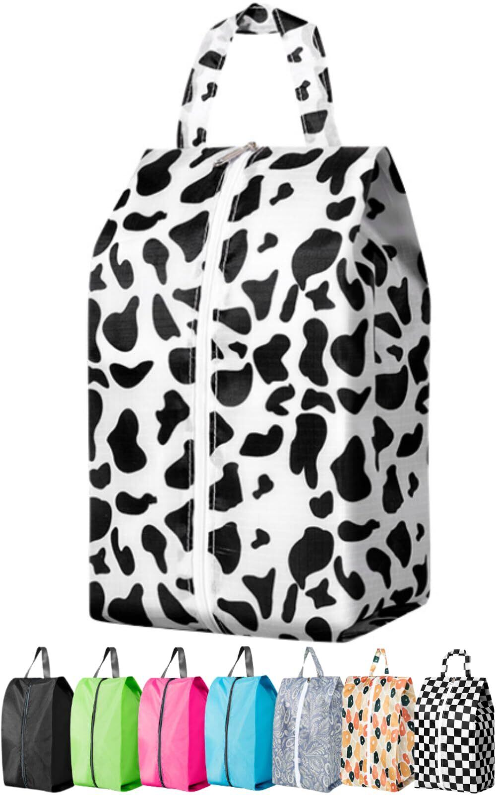 ターティス シューズバッグ 防水 超軽量 シューズケース 靴入れ袋 上履き入れ 男女兼用 スポーツ ジム 学校 部活 旅行 収納バッグ 撥水加工 カラーバリエーション豊富 (ホルスタイン, L)