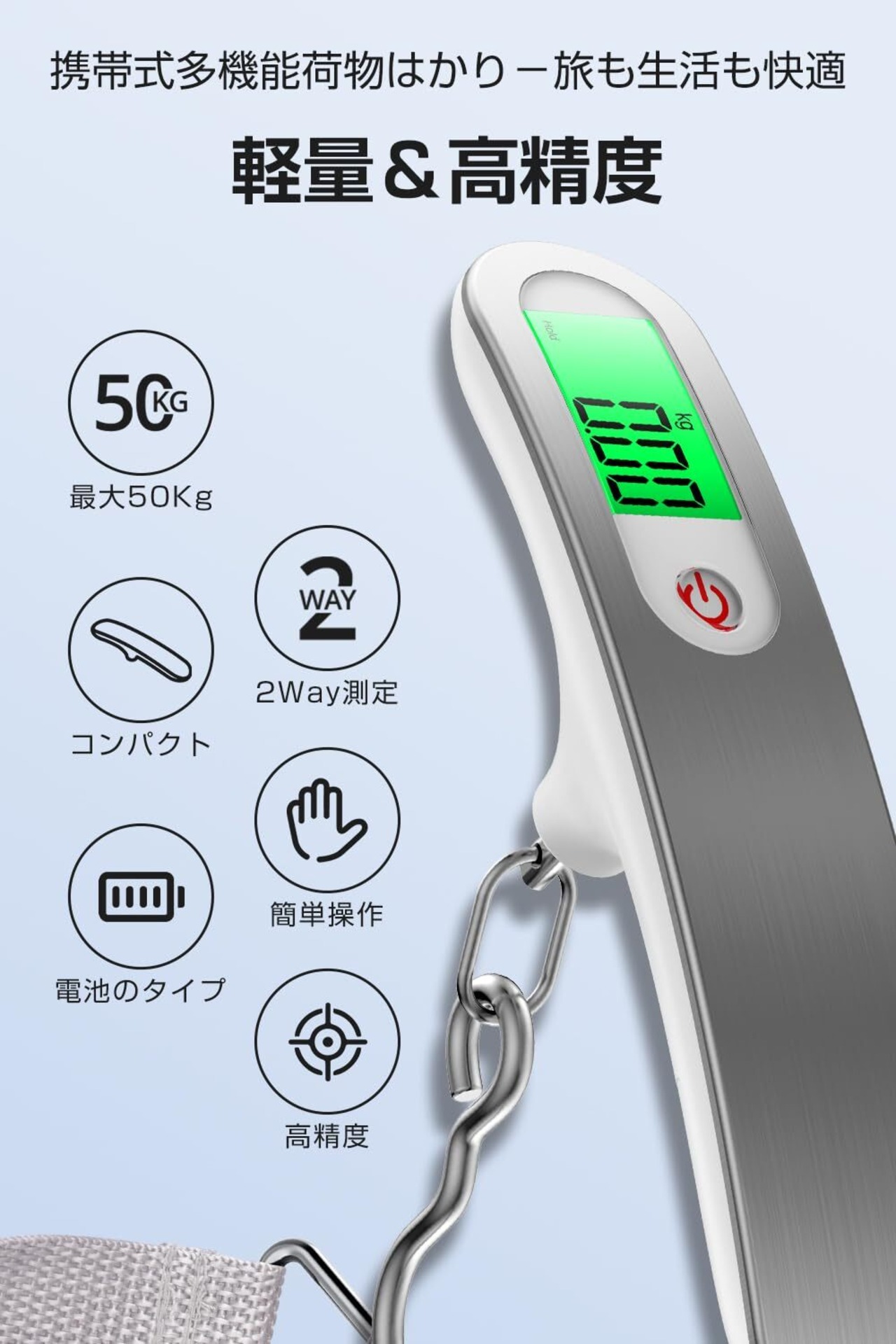 ️【最大50kg対応&高精度デジタルスケール】最大50kgまで0.01kg単位で測れる 高精度 デジタル はかり✨航空会社の重量制限対策に最適で、 荷物計り や スーツケース はかり として大活躍✈️吊り下げ式で使いやすく、 軽量・コンパクト な設計で持ち運びもラクラク デジタル表示 で見やすく操作も簡単!旅行 便利グッズ や 海外旅行 におすすめの 計量器 デジタル です