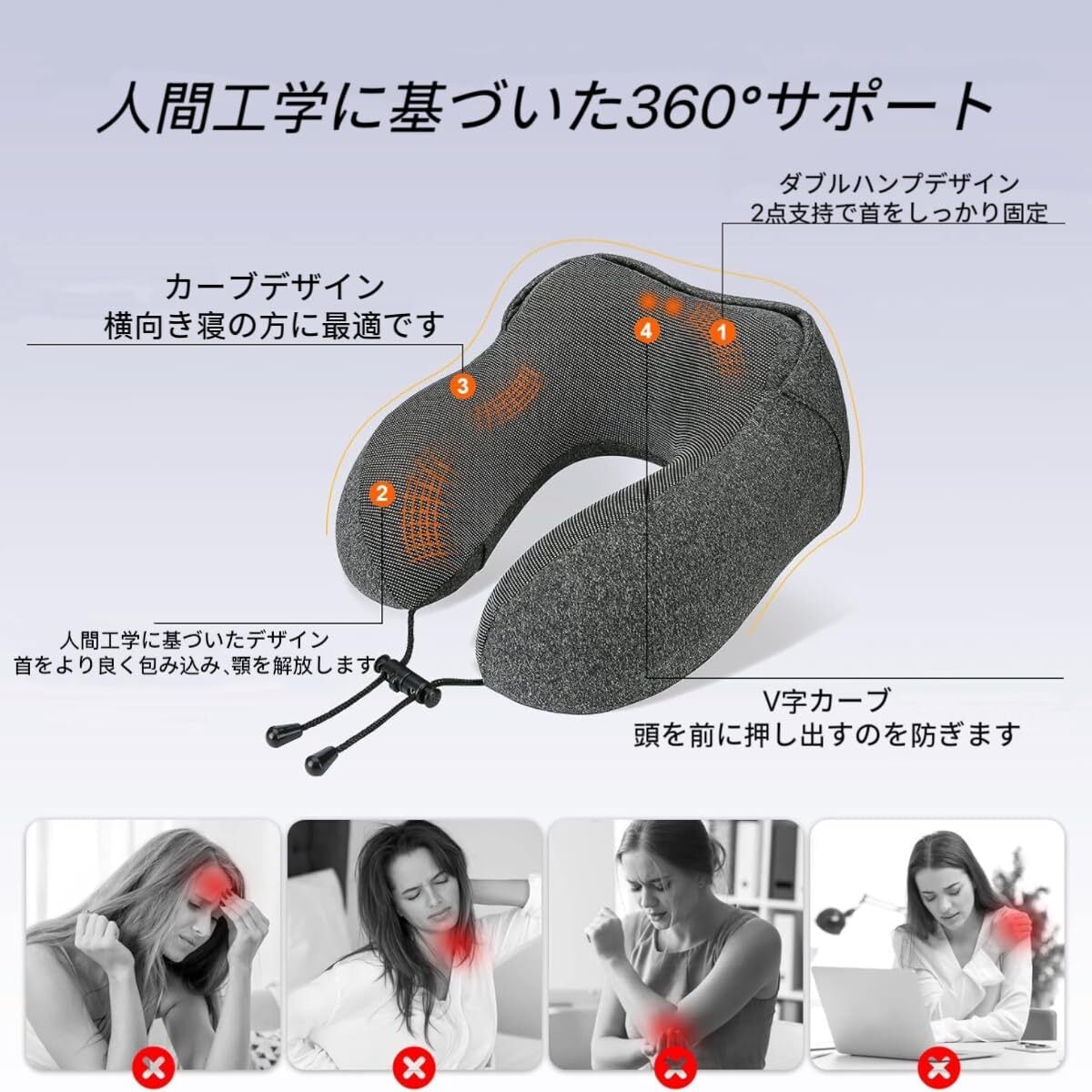 低反発素材:ネックピローは高品質のネックピロー 低反発メモリーフォームインナーコアを採用し、首を360°サポートし、優れたクッション性、安定性を備え、長期間使用しても頭を快適にサポートでき、快適な睡眠と優れたクッション効果が得られます。人間工学に基づいたデザインにより、頸椎の湾曲に合わせて首と後頭部をサポートし、肩、背骨、首への負担を効果的に軽減します。極上のリラックス感、低反発ポリウレタン素材は膨らませる必要がなく、収納袋から取り出してすぐに使えます。