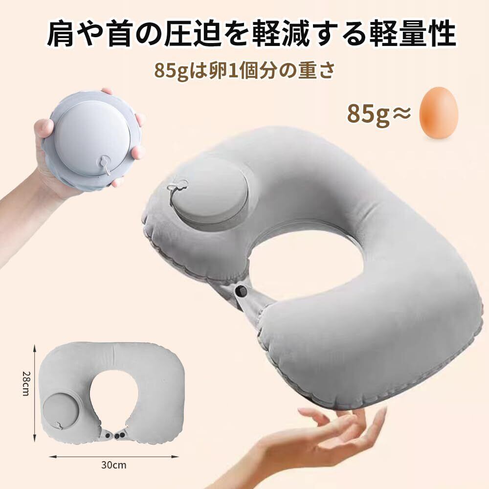 ネックピロー U型まくら 首枕 携帯枕 手動プレス式膨らませる ポンプ式 小巧 轻便 空気枕 旅行枕 飛行機 トラベル 収納ポーチ付き アイマスクと耳栓