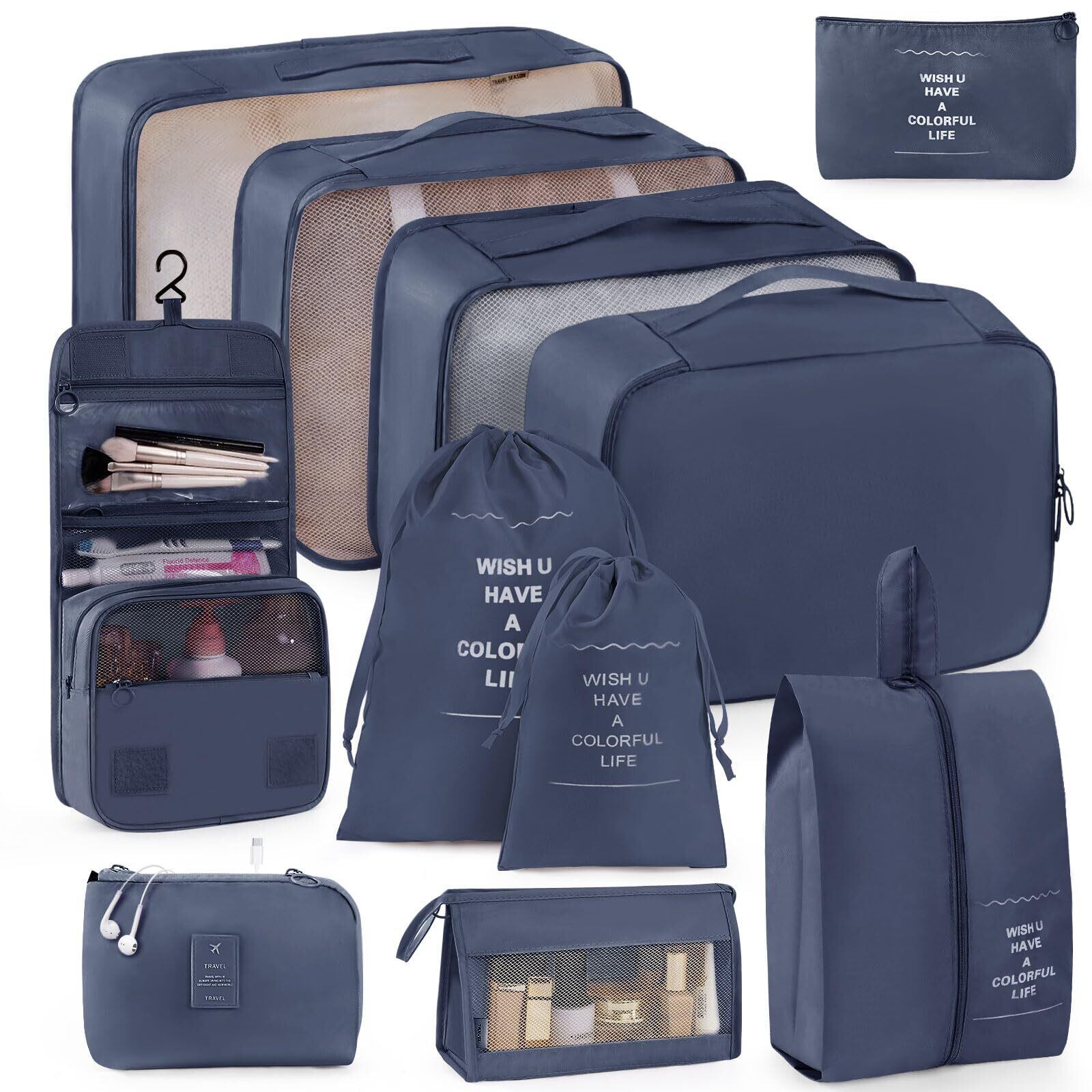 【人気商品】TRMF トラベルポーチ 11点セット 旅行用ポーチ パッキングポーチ アレンジケース 洗面用具 旅行用 出張 衣類 整理 便利グッズ 靴用 下着収納 吊り下げ 小物入れ | SmartLiving+