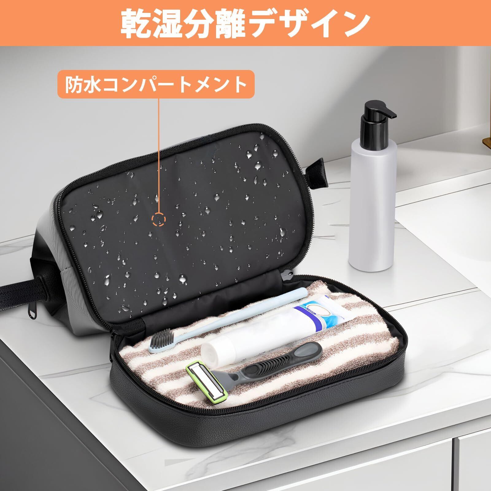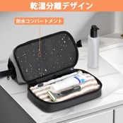 ドライ&ウェット分離デザイン:この化粧ポーチ メンズはダブルレイヤーデザインを採用しており、上層部は広々としており、化粧品やスキンケア製品の収納に最適です。独立した下層コンパートメントは防水ライニング素材で作られており、濡れたタオルや歯ブラシなどのアイテムを効果的に分離し、乾燥した清潔な状態を保ちます。また、簡単に洗えるため、旅行や日常使用に適です