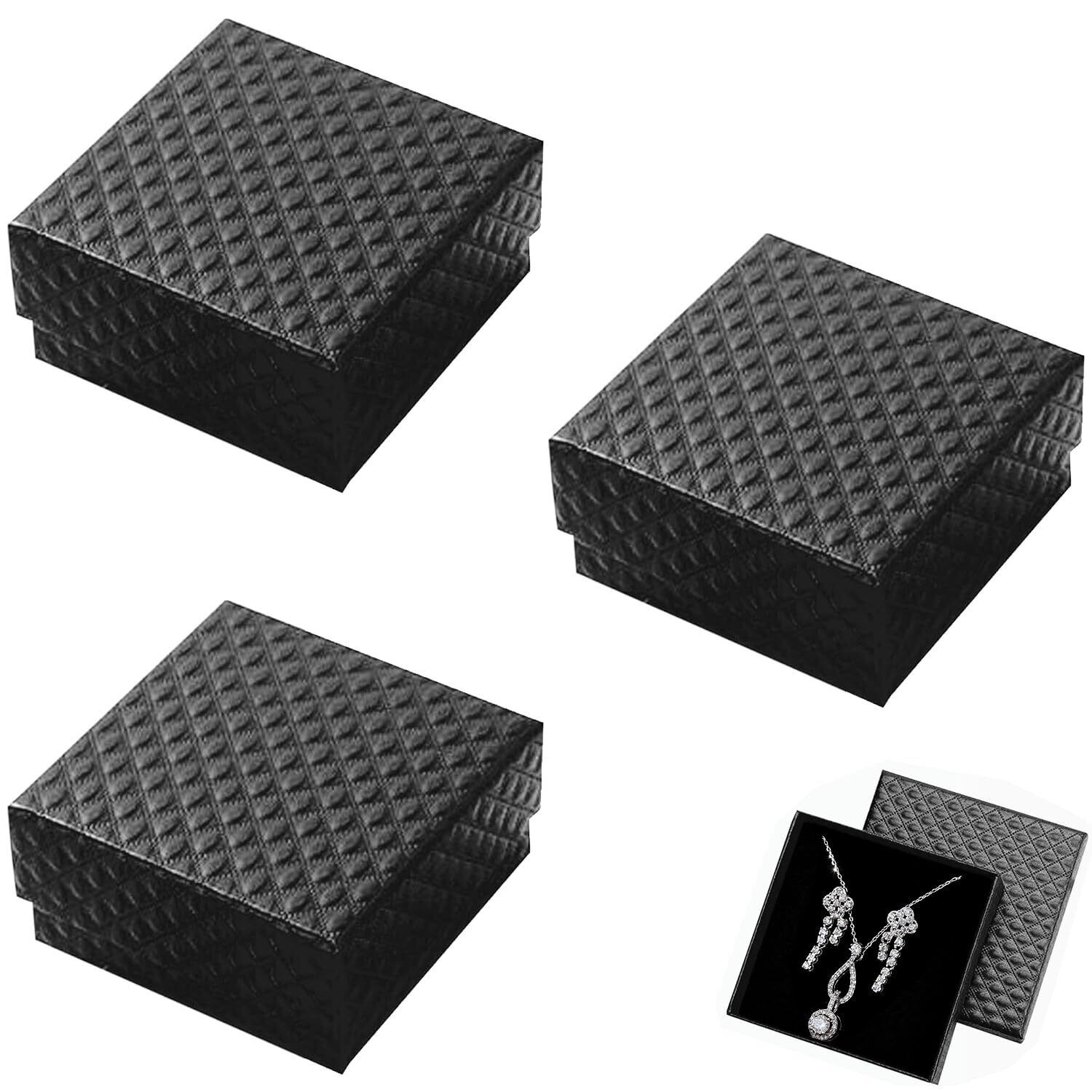 ジュエリーボックス アクセサリー紙箱【3個セット】ギフトボックス 小 指輪ケース 指輪 ピアス リング ジュエリー収納ボックス 包装 誕生日 贈り物 スポンジ付き 黒 正方形 9X9X3CM
