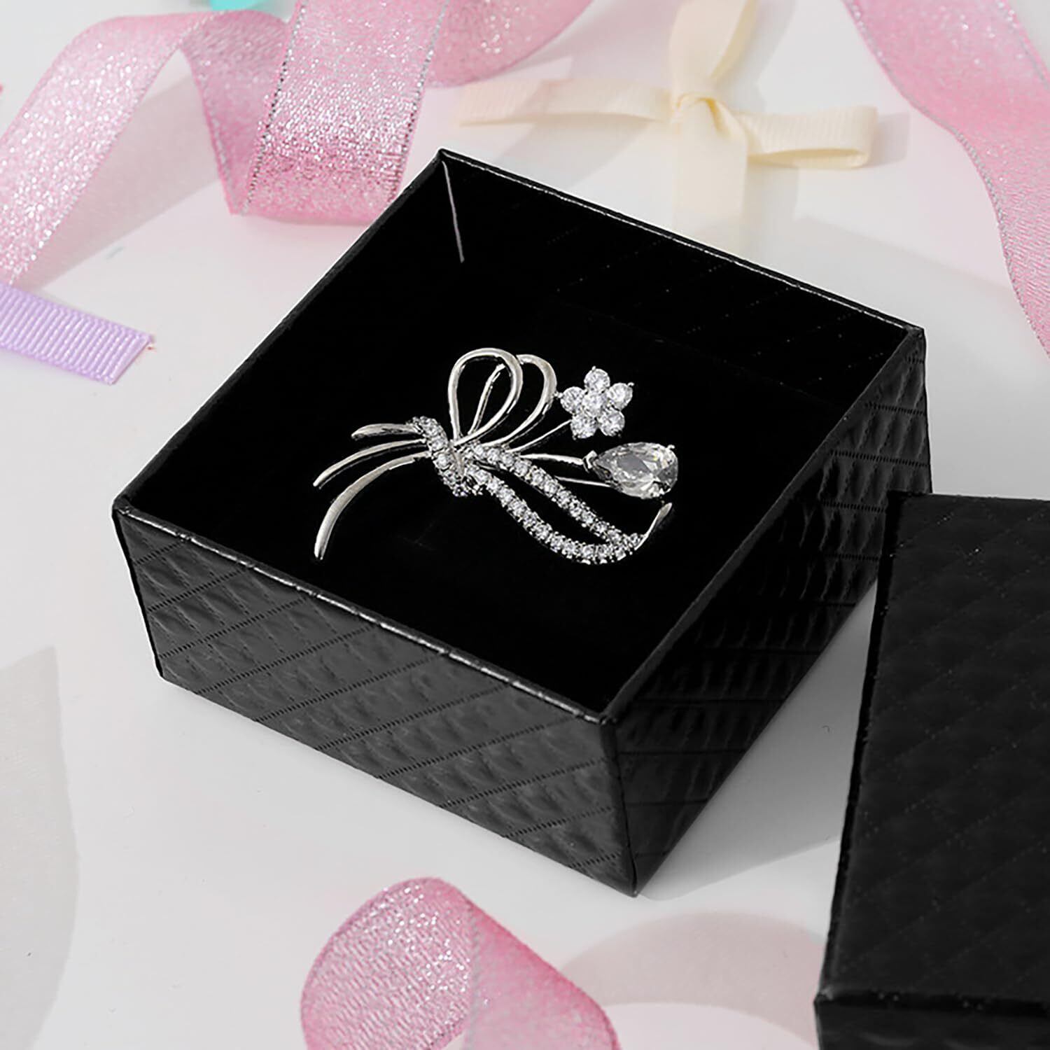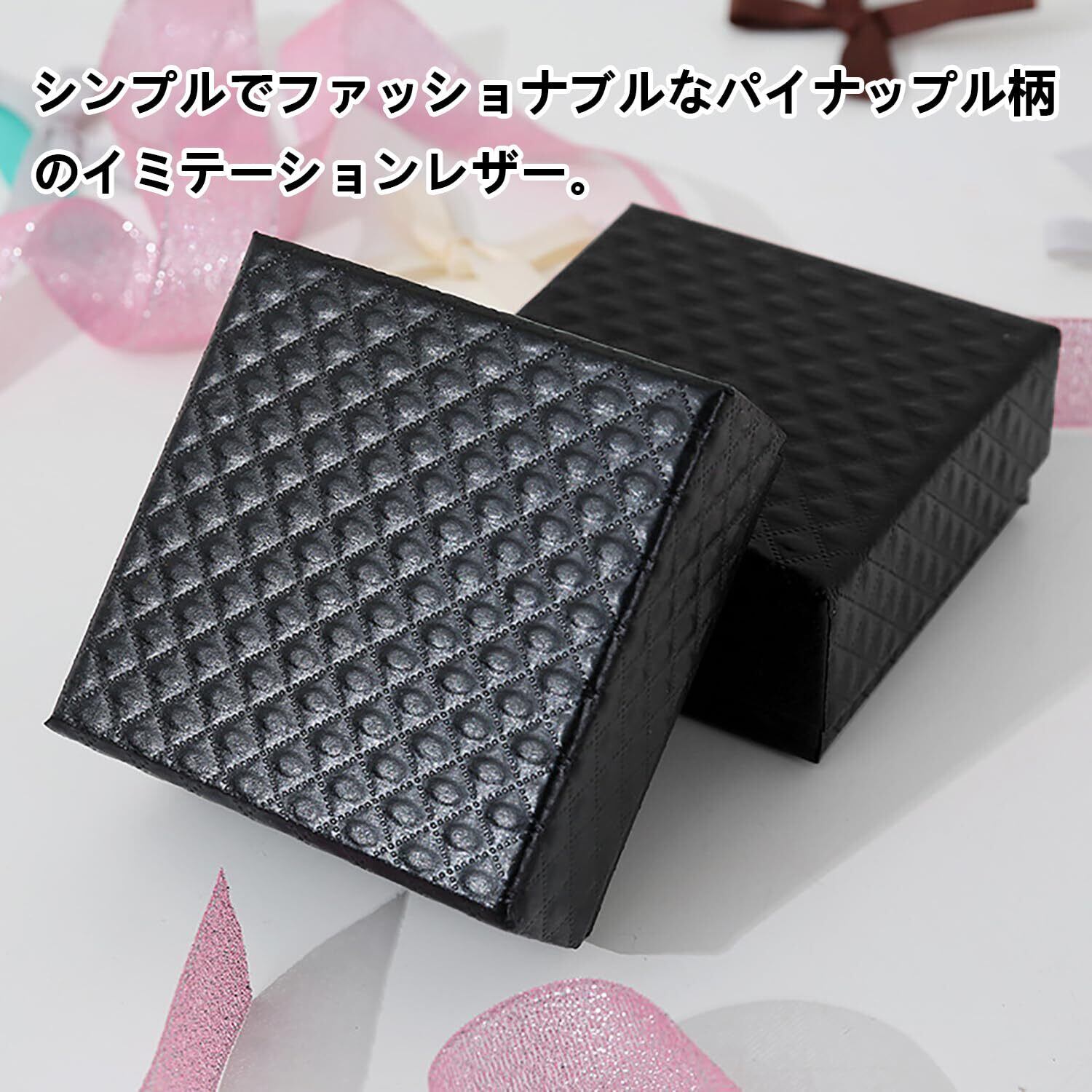 【小物アクセサリーにオススメ】ギフトボックスのサイズが9cm×9cmの正方形(高さは約3cm)なので、指輪、ネックレス、ピアス、イヤリング等の小さめアクセサリーにちょうどよい大きさです。