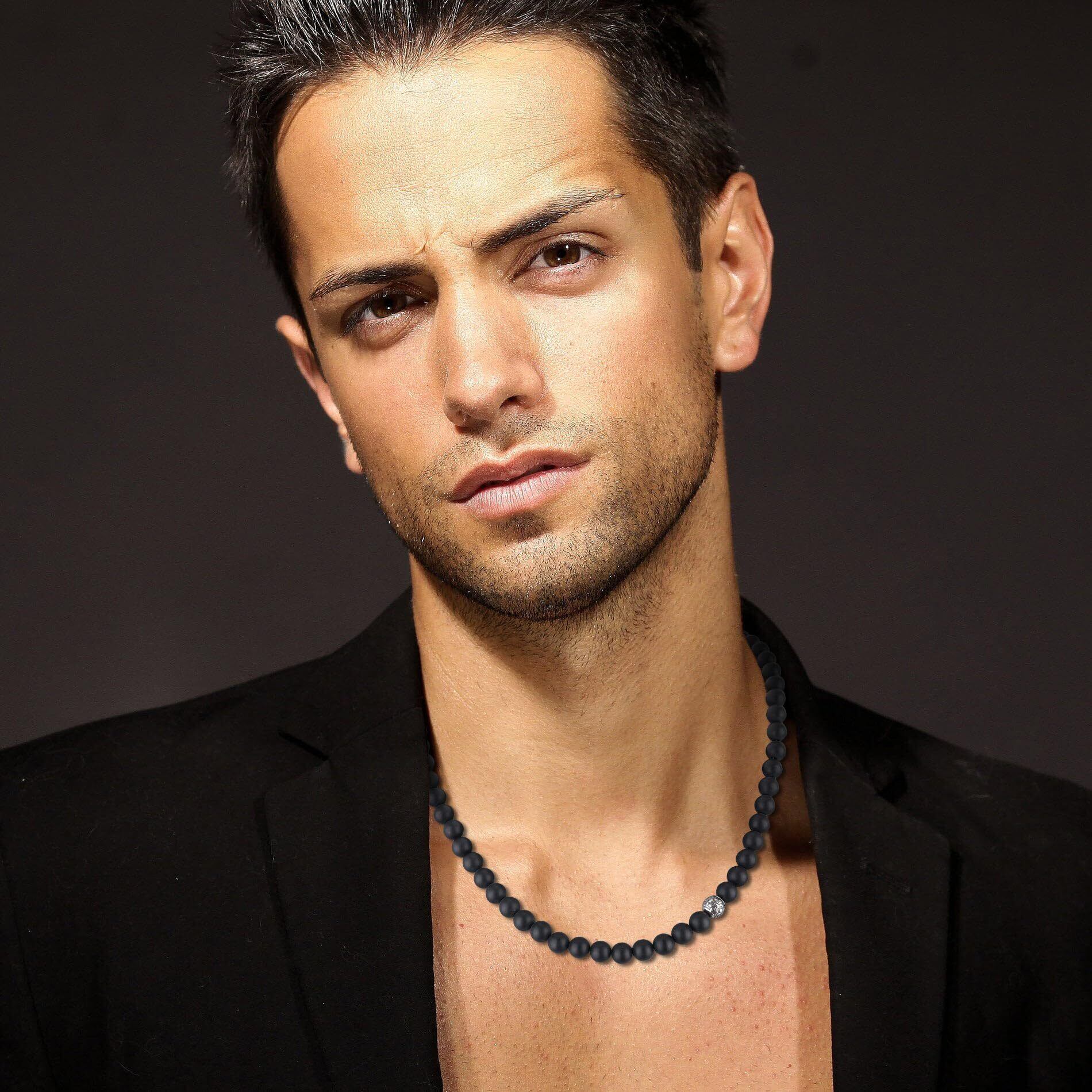このマットオニキスネックレスは、力強さ、お守り、スタイルを追求する男性に最適なアクセサリーです