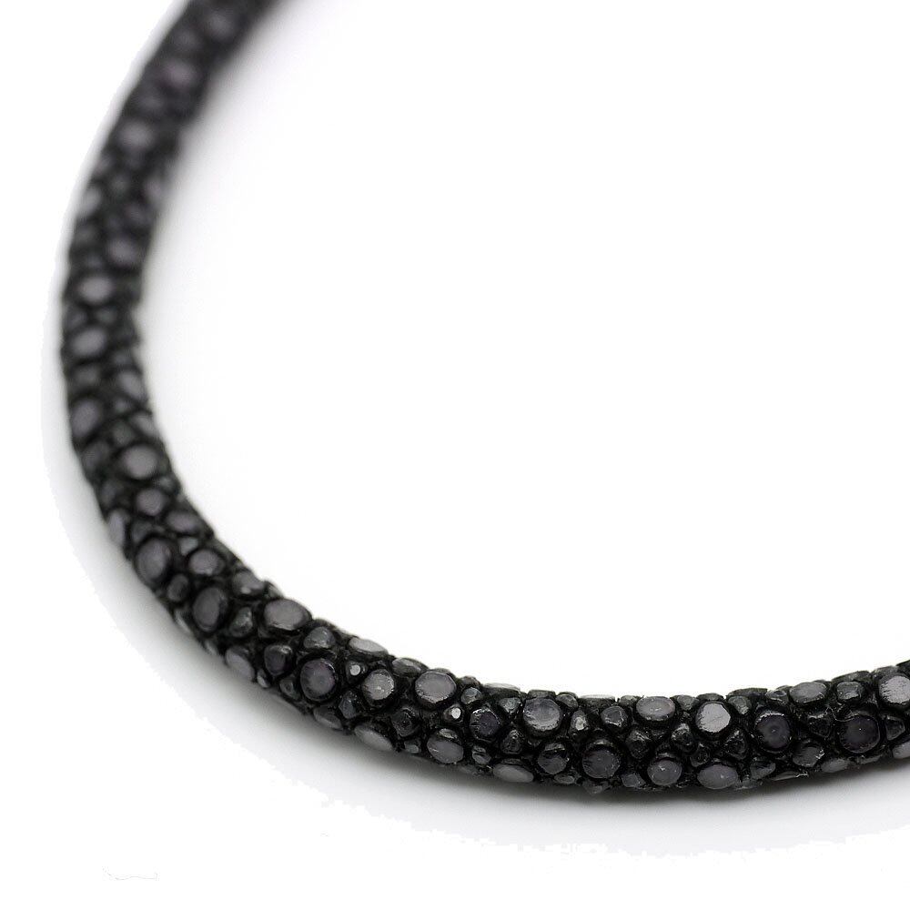 [シルバーワン] スティングレイ革(エイ)キラキラ レザー チョーカー 黒 シルバー925フック メンズ[幅3mm5mm]ブラック ネックレス