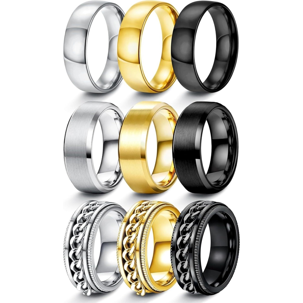 [JeryWe] 9点 セット 指輪 メンズ 人気 リング ブラック ゴールド プラチナ シンプル イケメン おしゃれ 男性 リング プレゼント