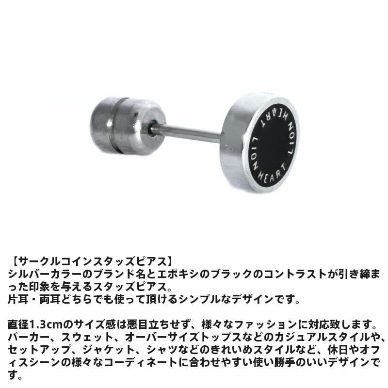 ライオンハート ラッピング済 サークルコイン スタッズピアス サージカルステンレス316L 金属アレルギー対応 片耳用 1点売り 別注ポーチ付き メンズ ブランド LION HEART