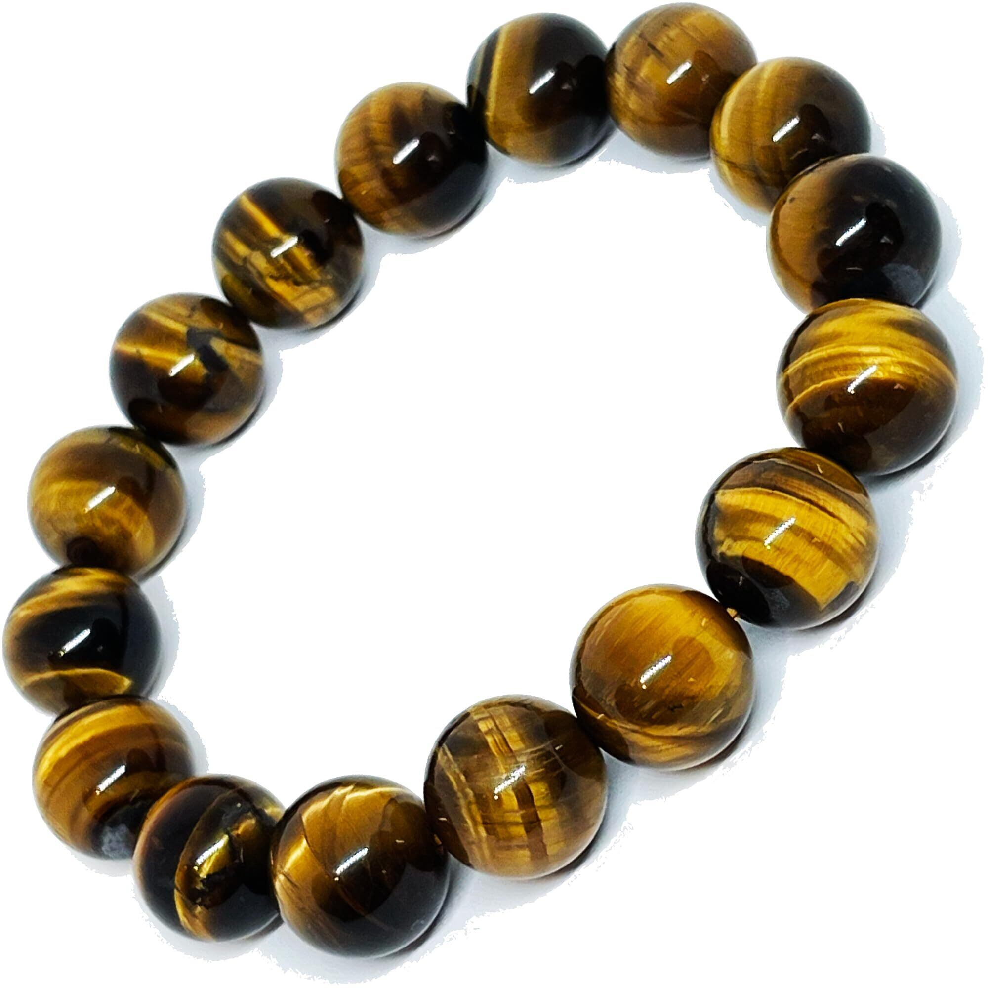 イエロータイガーアイの研磨された石の表面にはいくつもの美しい光のストライプが見られます。その見た目は虎の目のように見えることから『すべてを見通す目』として人気のあるパワーストーンです。