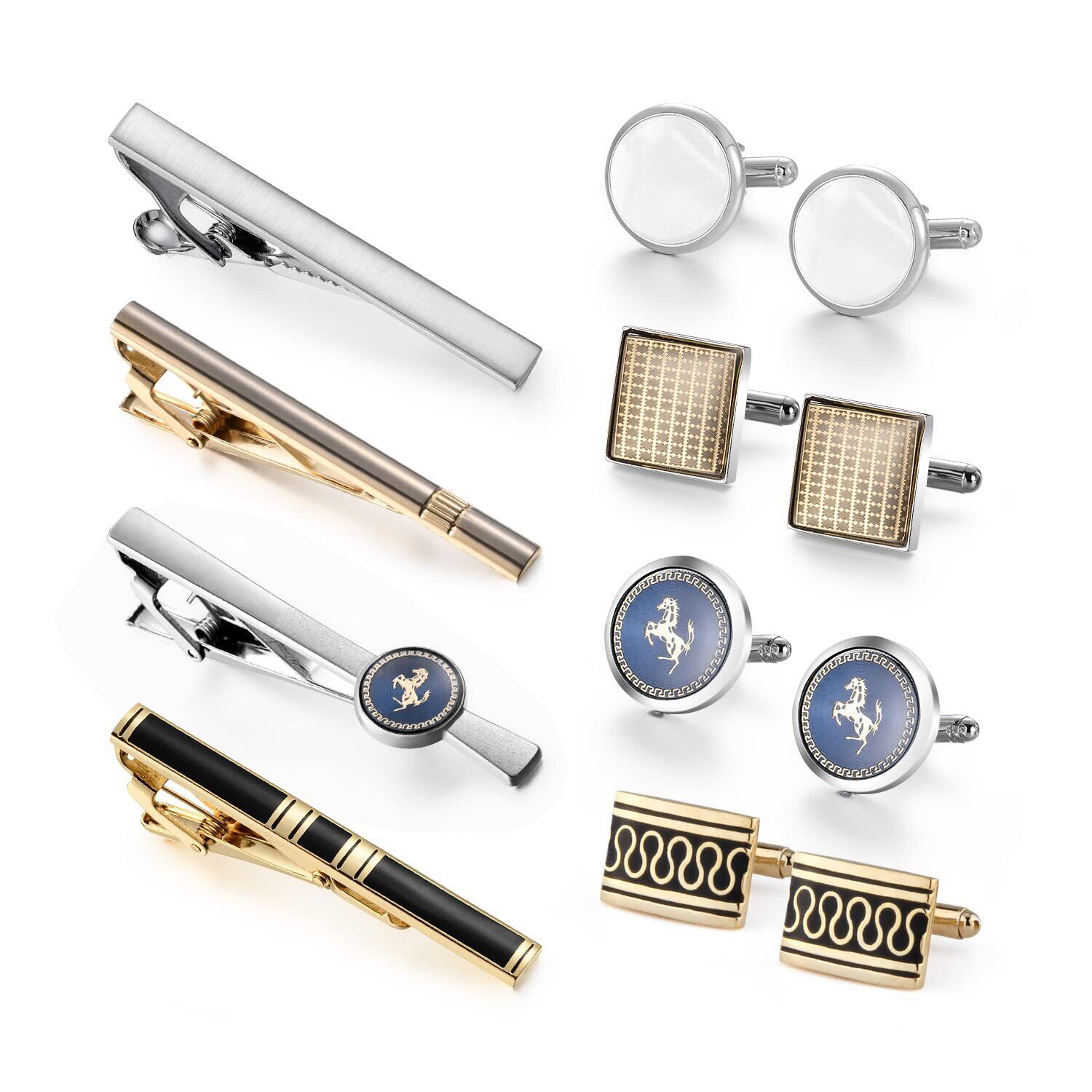 [wynameleri]カフスボタンネクタイクリップセット 8個入り 高級ケース付き ファッション 人気 シンプルでいておしゃれ感 日常仕事 結婚式等