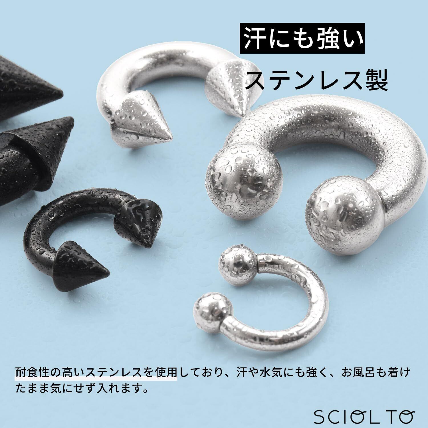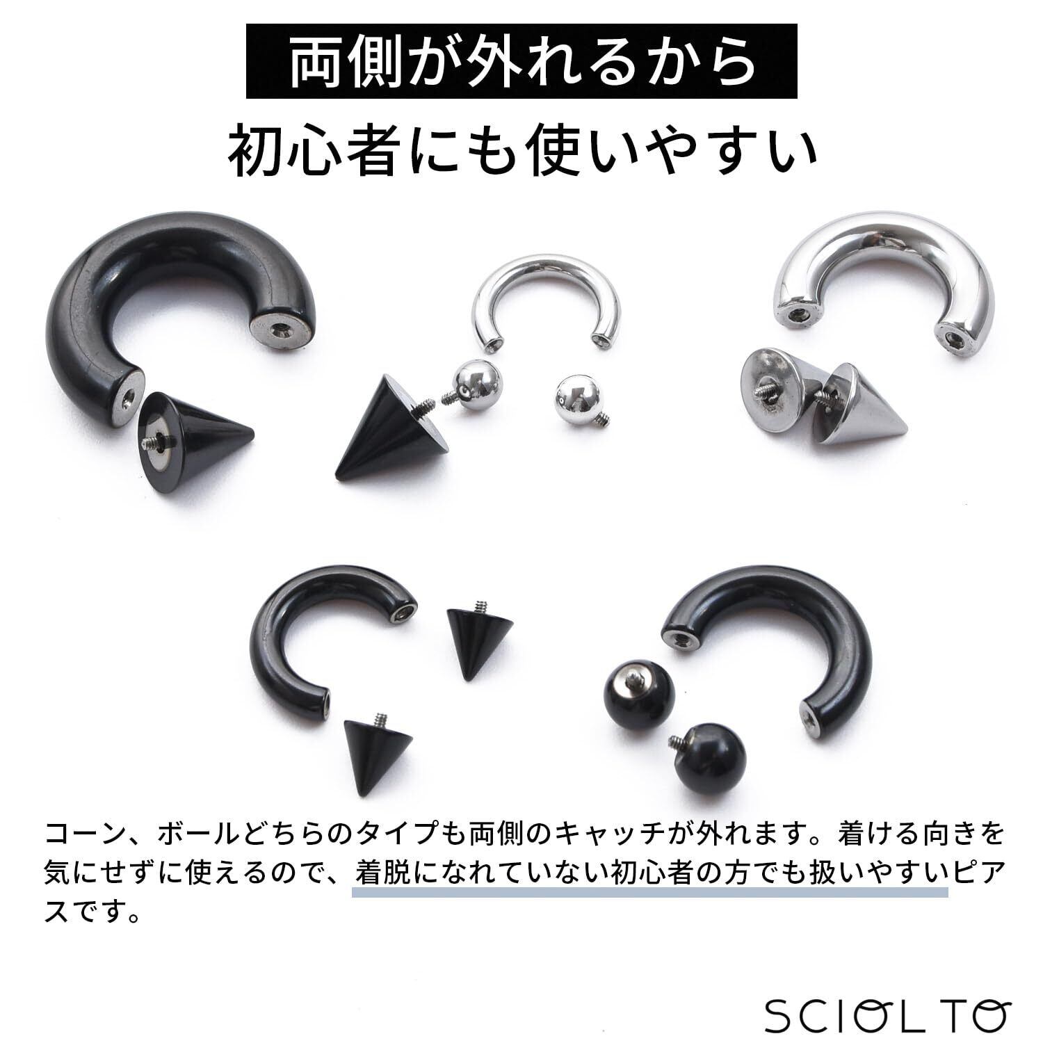 [§SCIOL TO] (ショルト)サーキュラーバーベル ラージゲージ ボディピアス [00G~8G] イヤーロブ ヘリックス 耳たぶ 軟骨ピアス ステンレス
