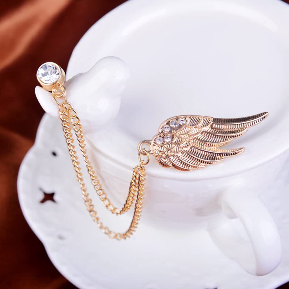 WOWTAC ラペルピン ブローチ 翼 羽根 ゴールド シルバー チェーン アクセサリー ピンバッジ スーツ 結婚式 天使