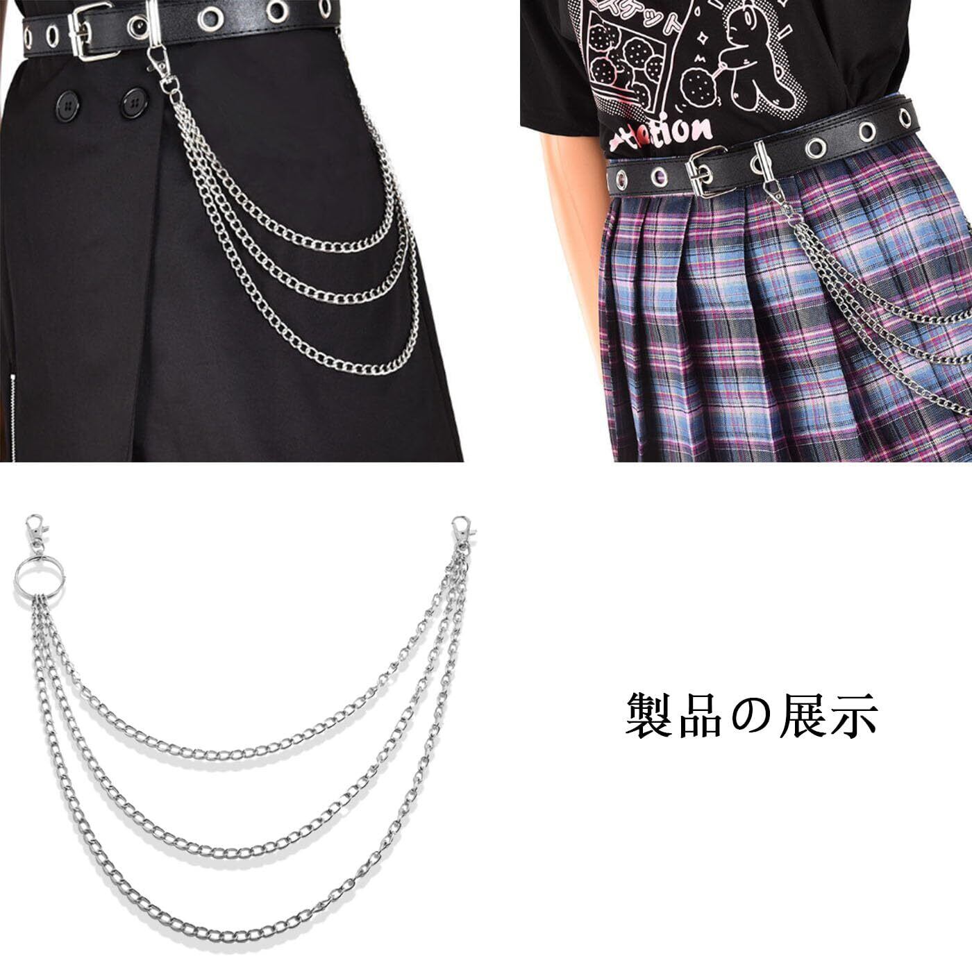 Mirhua 三重チェーンウエスト パンツチェーン ップホップロ ドレス用 ニッケ ヒップホップ ジーンズ( シルバー)