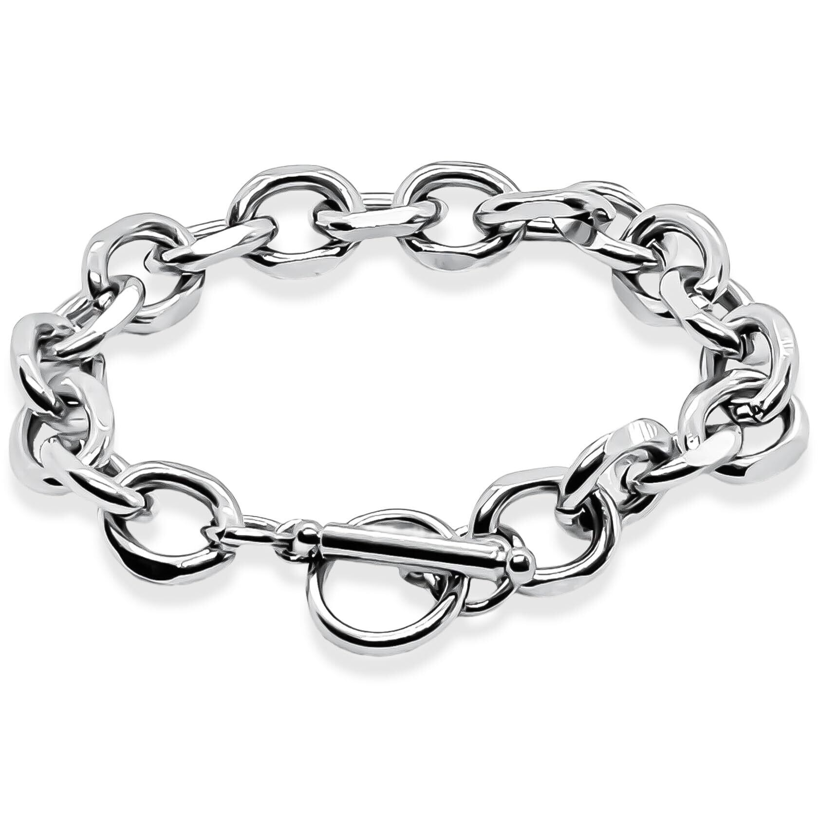 [swars] ブレスレット ユニセックス 金属アレルギー対応 ステンレス マンテル チェーン シルバー (18, 幅:10mm)