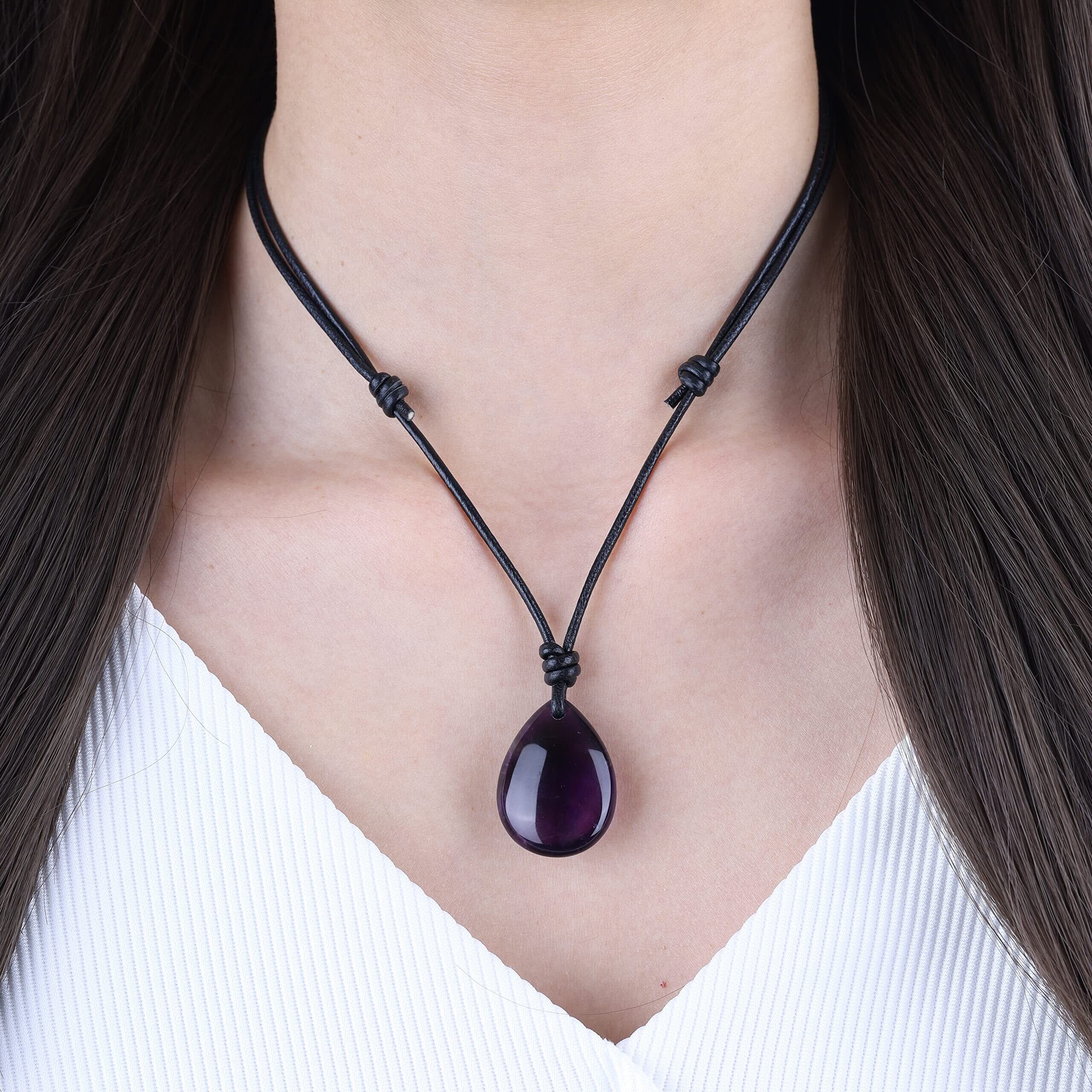 サイズ:30*22*10.5mmアメジスト レザーチェーン38-68cm(長さ調整できる)